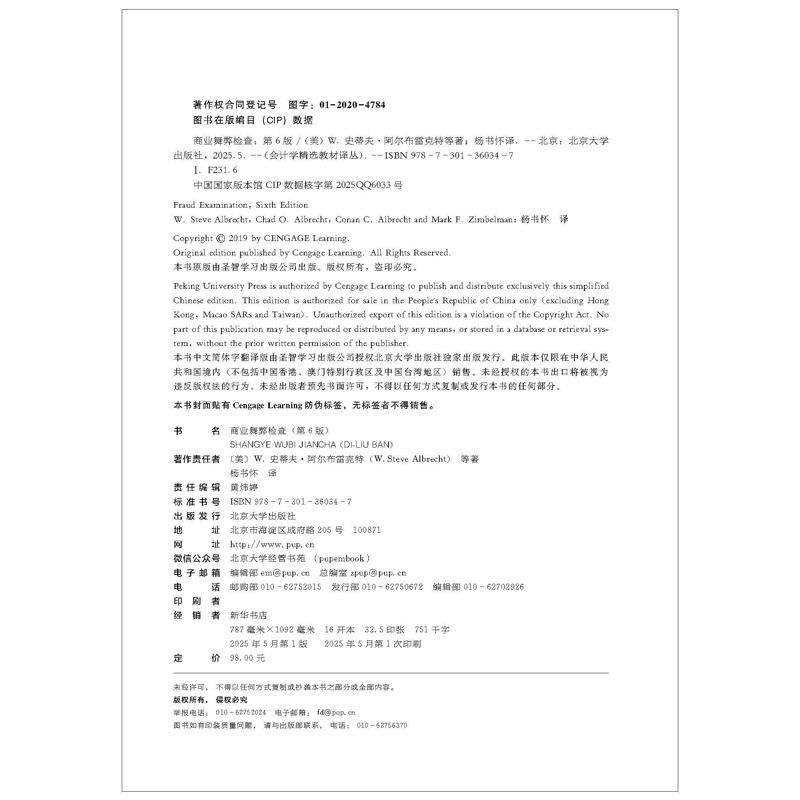 社新华书店正版 北京大学出版 第6版 商业舞弊检查