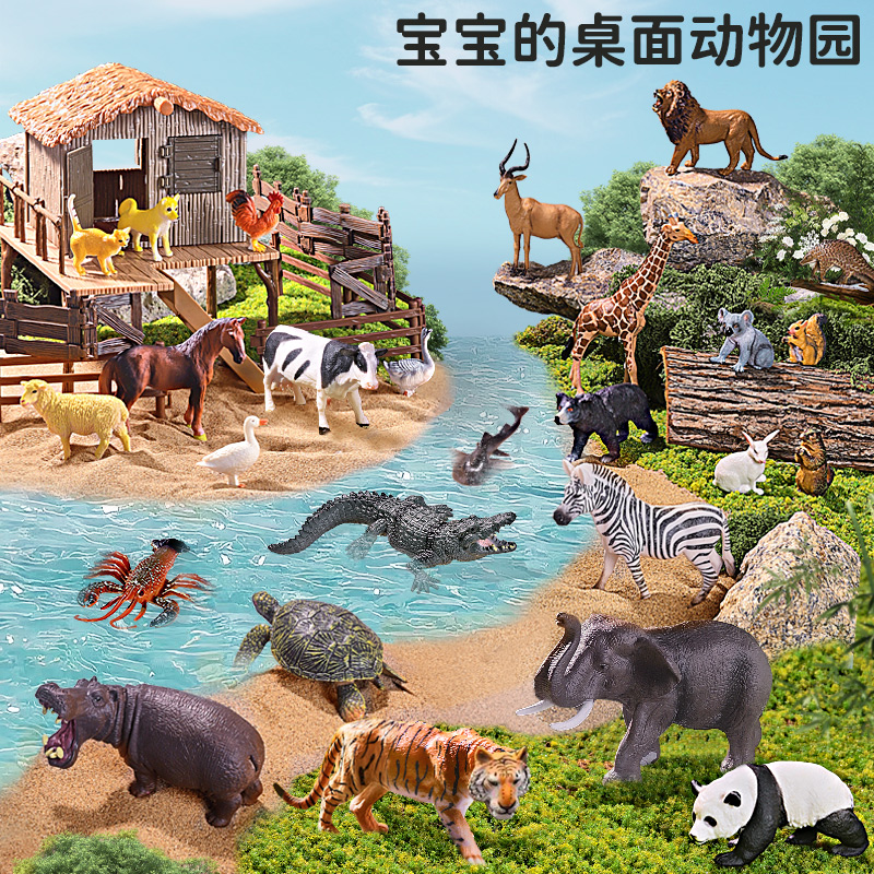 动物模型儿童仿真玩具早教套装 宝宝认知1野生动物园2世界全套农场