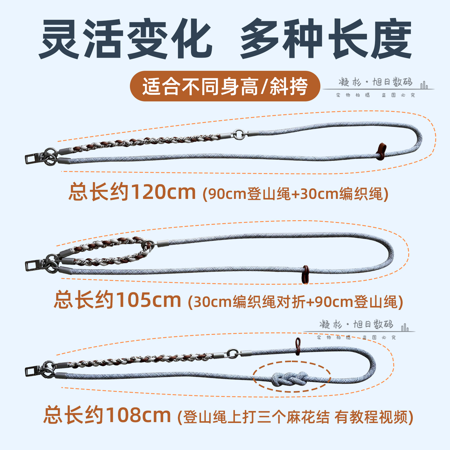 四股编织三合一背带手机挂绳斜挎可背挂脖手提绳防盗防丢可拆卸防丢登山绳结实带金属垫片壳长短款 双头扣相机