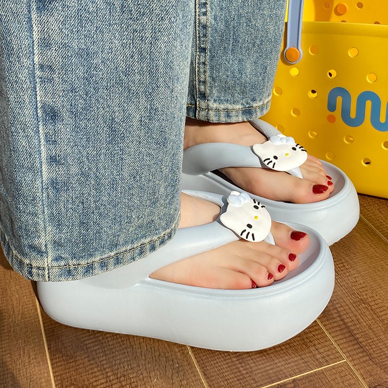 hotmarzz厚底人字拖女夏外穿防滑坡跟夹脚高跟增高海边沙滩凉拖鞋