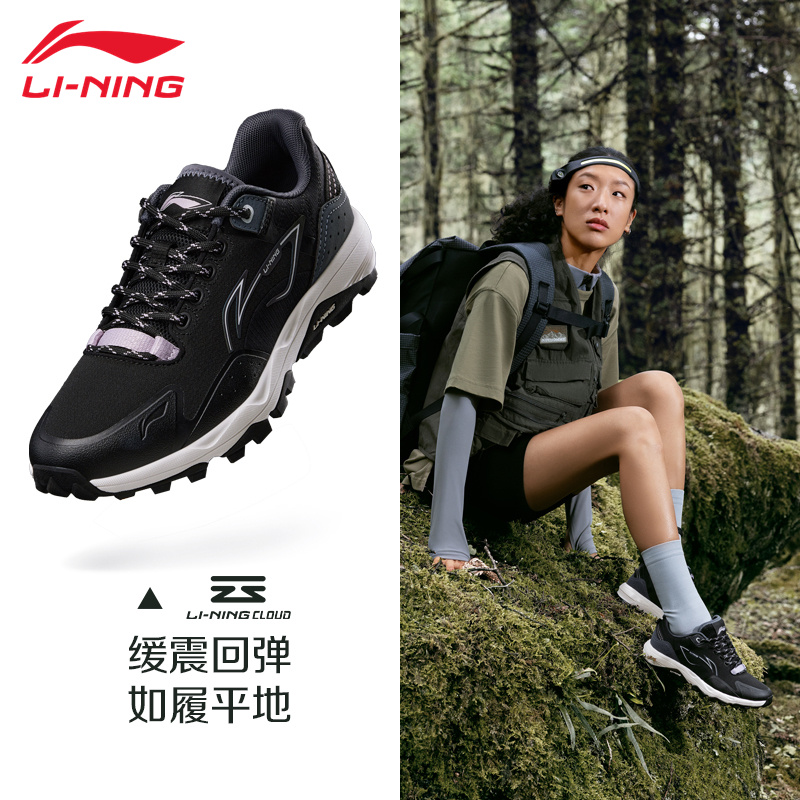 网面轻便透气软底减震回弹休闲黑色运动鞋 男女款 跑步鞋 李宁轻羽