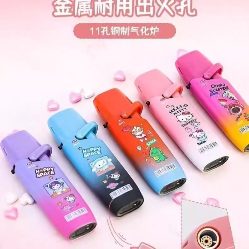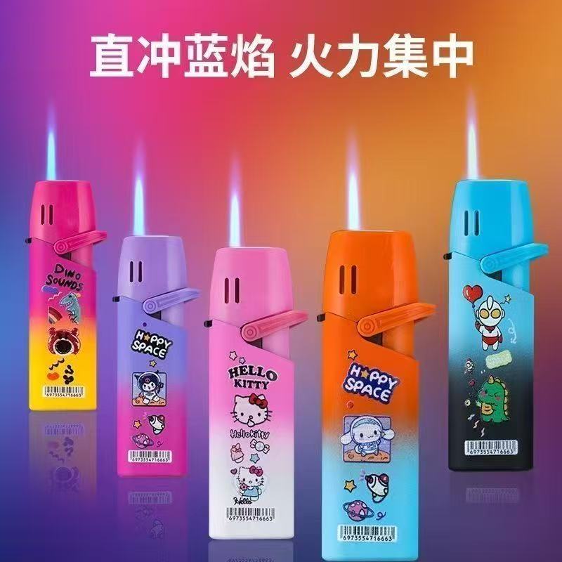 新款 打火机 充气体防风直冲金属打火机高颜值卡通渐小摇臂充气式