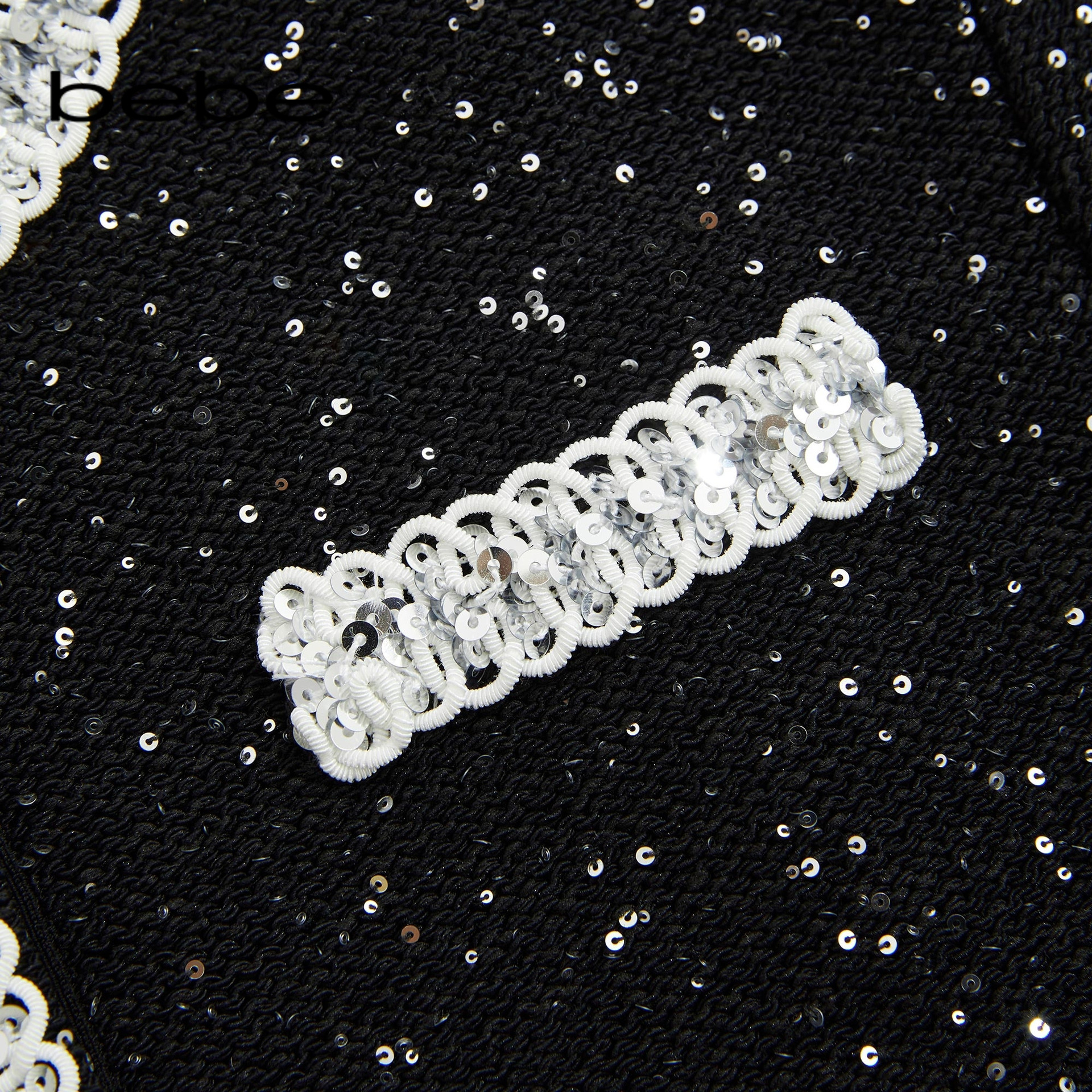 bebe2025秋季 女士气质小香风圆领织带花边针织上衣330402 新款
