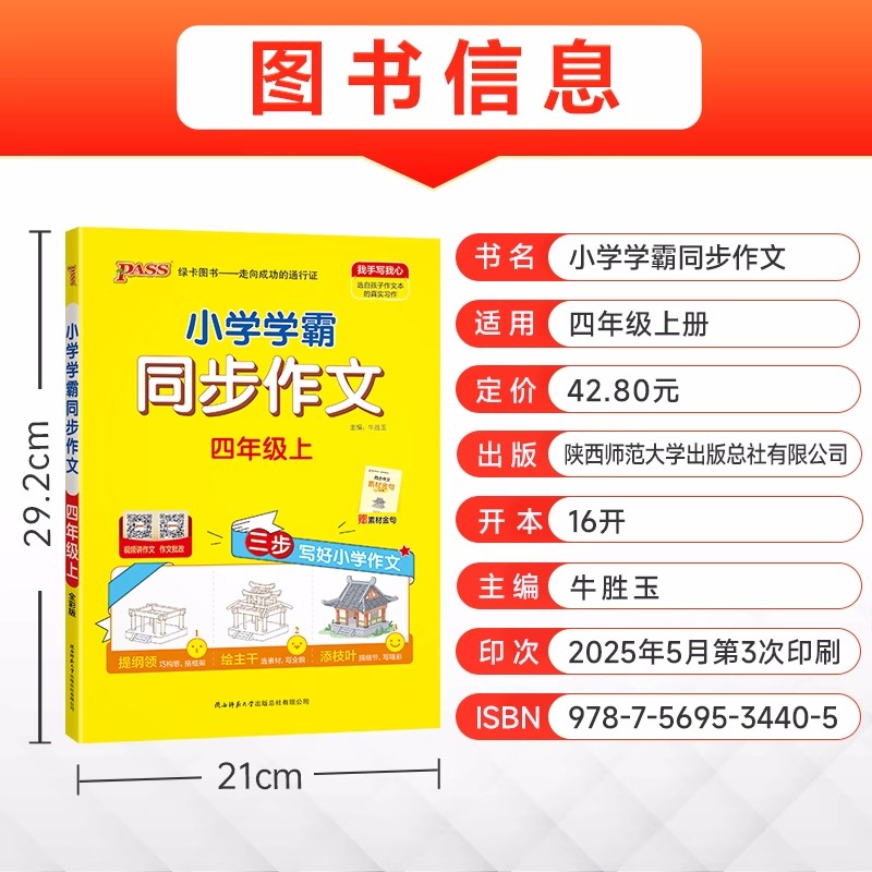 2025秋小学学霸同步作文四年级上册语文人教版 PASS绿卡图书小学生同步作文全解读4年级语文教材同步作文全程指导写作入门作文起步