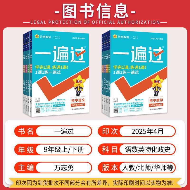 2025秋初中一遍过人教版 北师沪科七年级八年级九年级上册下册英语数学语文地理生物历史政治物理化学初一二三教材同步练习试卷天星
