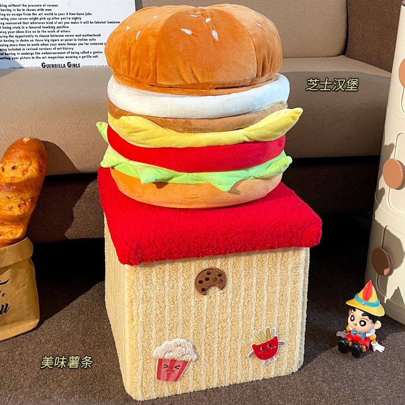 汉堡收纳凳小凳子家用可爱储物盒可坐换鞋 凳矮凳板凳坐墩房间好物