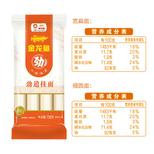 金龙鱼家常系列劲道挂面758G 营养早餐挂面 粗面细面
