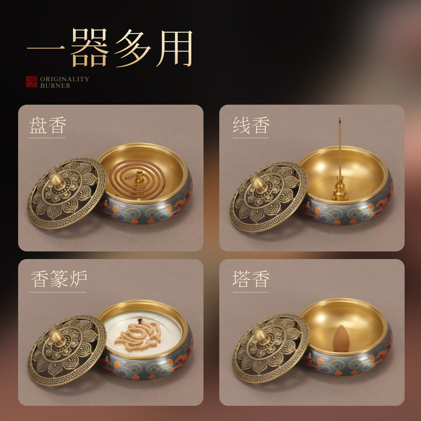 铜香炉纯铜上香家用供奉室内沉香檀香熏香炉盘托香盒香篆香薰炉子