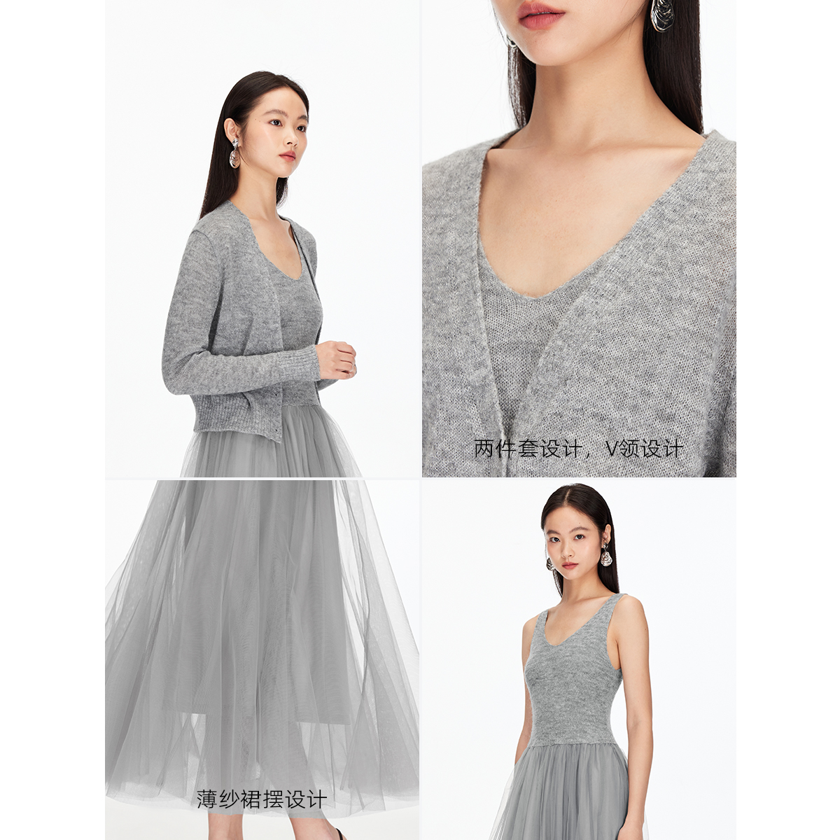 清澈之心 百搭圆领开衫 秋季 法式 外套蓝色吊带连衣裙女 新款 乔拉