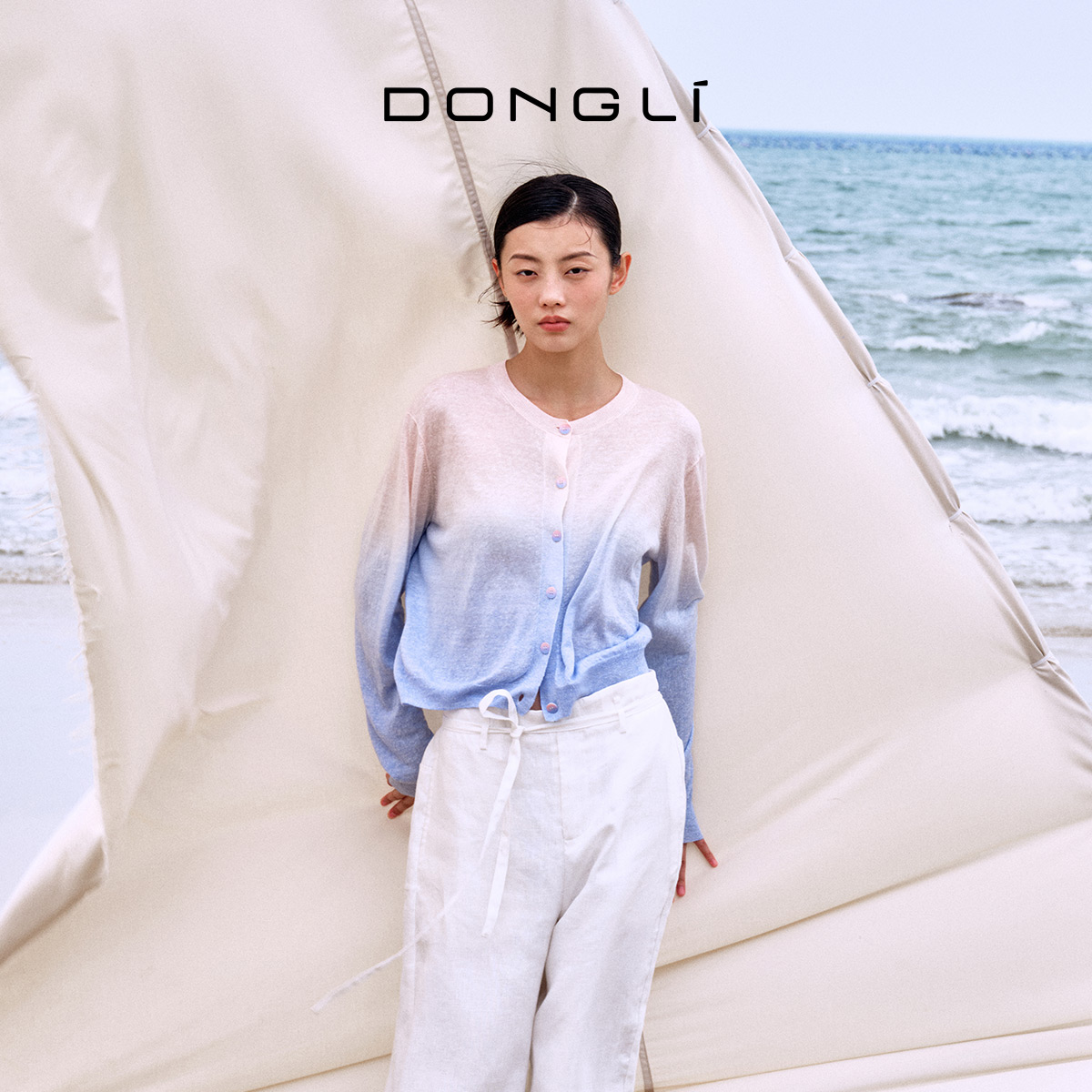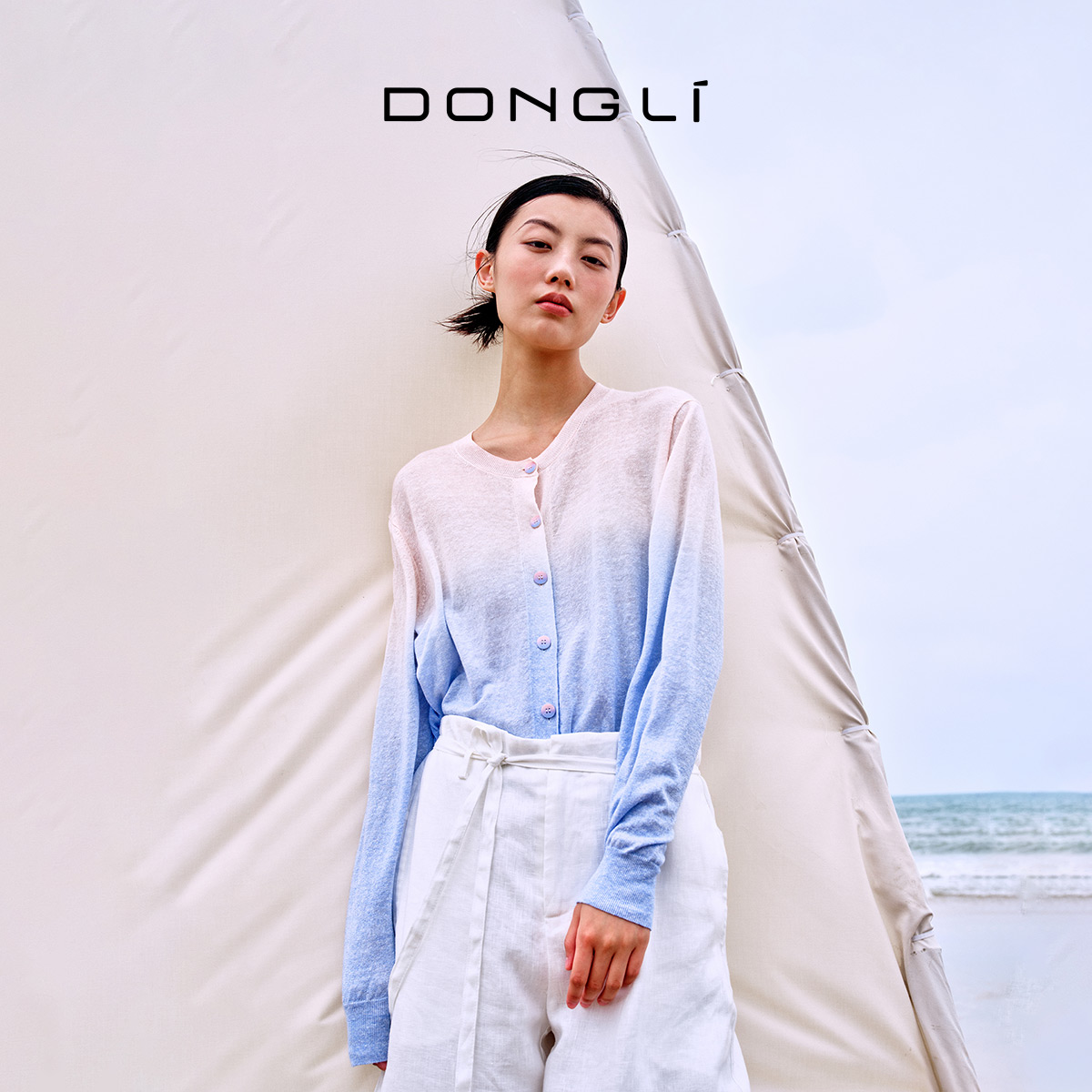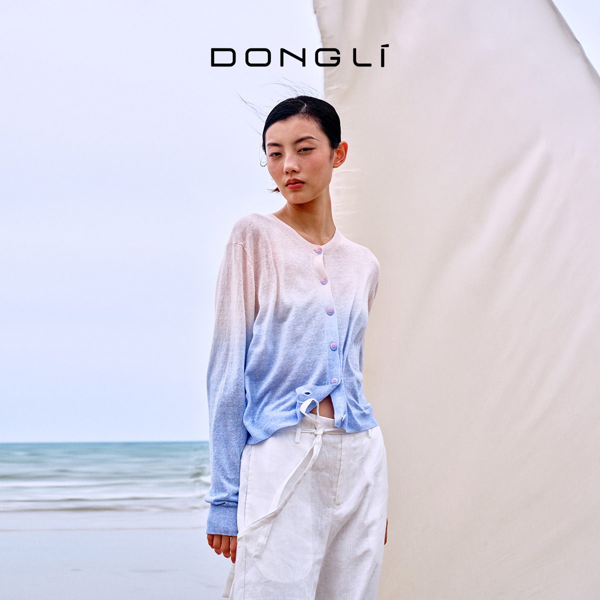幻汐 海风 亚麻桑蚕丝 夏季 5272 东黎 女士吊染撞色针织开衫 温柔