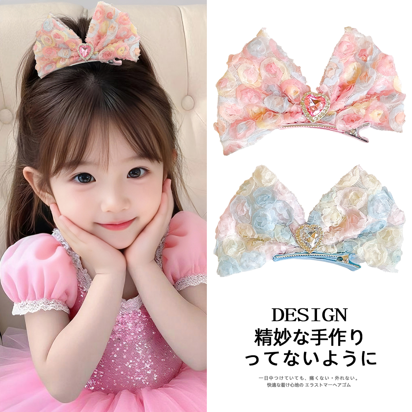 蝴蝶结公主发卡女童超仙渐变花朵顶夹儿童甜美女孩不伤发发夹发饰