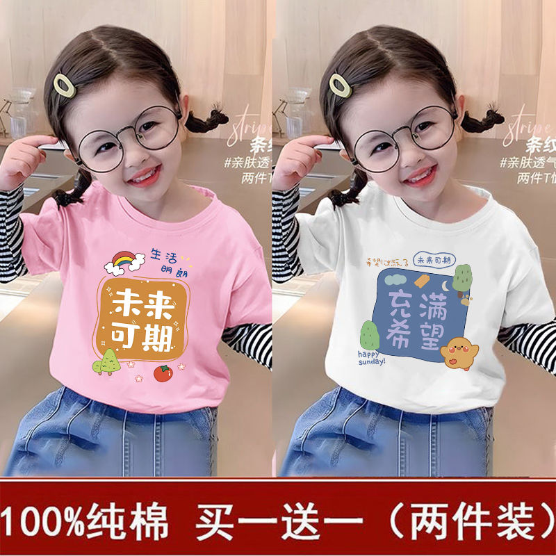 女孩宝宝条纹拼接假两件T恤打底衫 上衣爆款 儿童纯棉长袖 2025新款