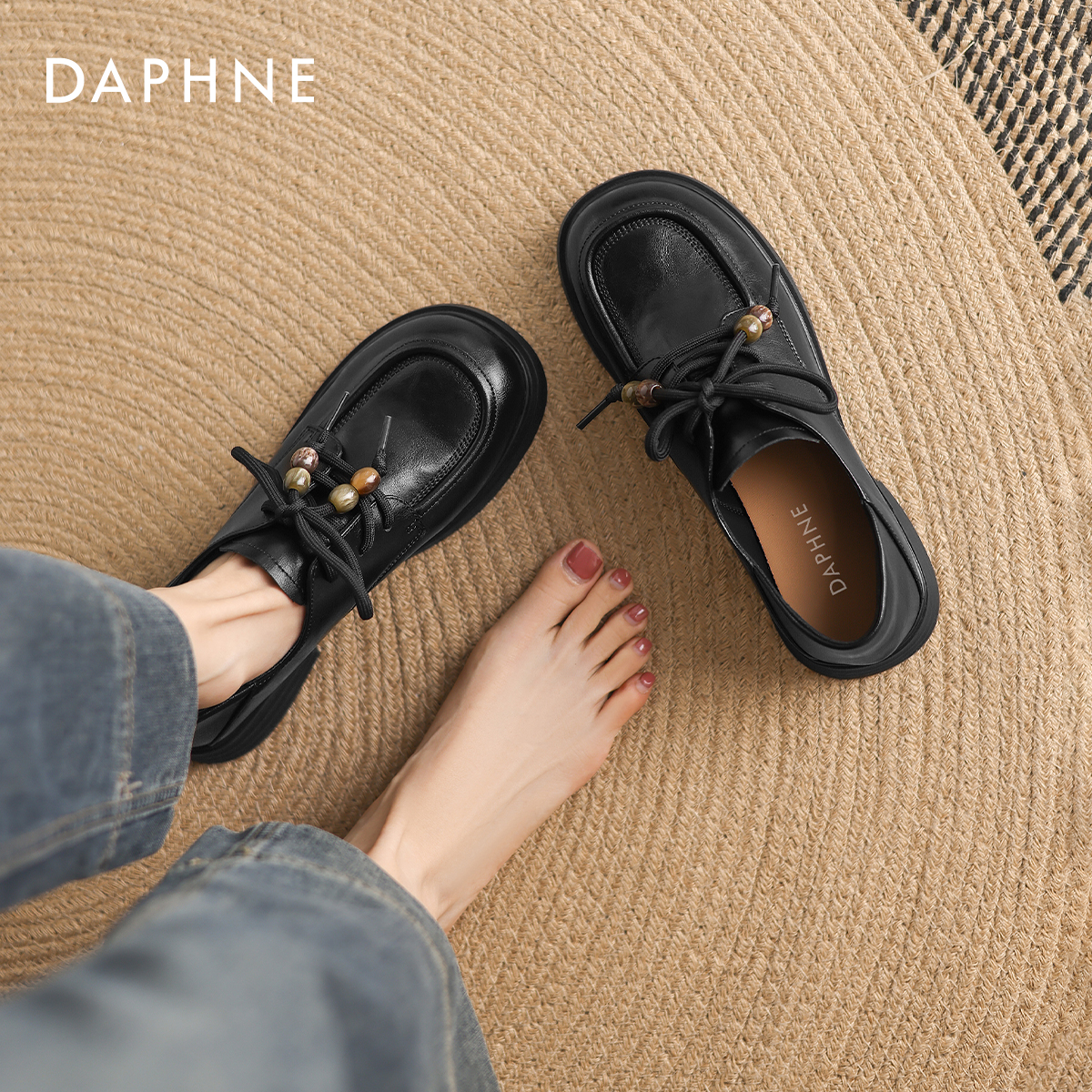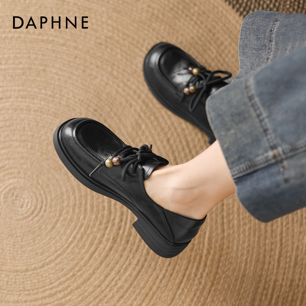 气质通勤女士平底单鞋 达芙妮乐福鞋 英伦风黑色小皮鞋 2025新款 女款