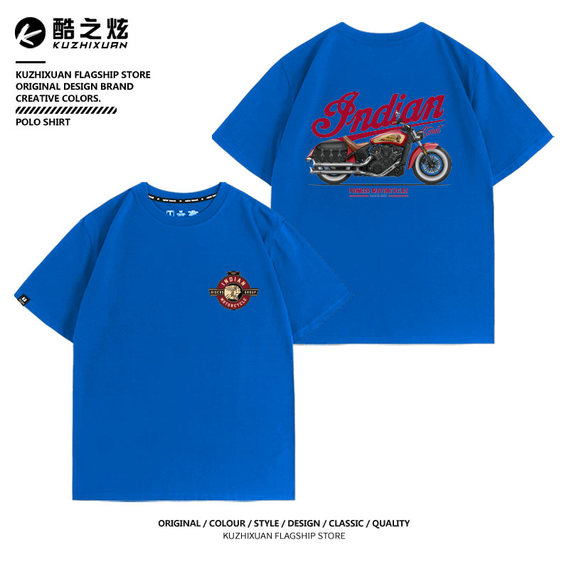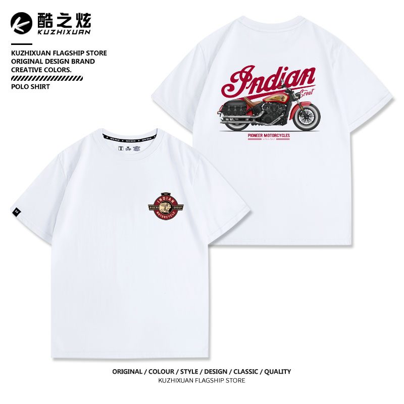 美式 宽松T恤百搭潮 复古摩托车巡航车骑行服俱乐部机车男休闲夏季