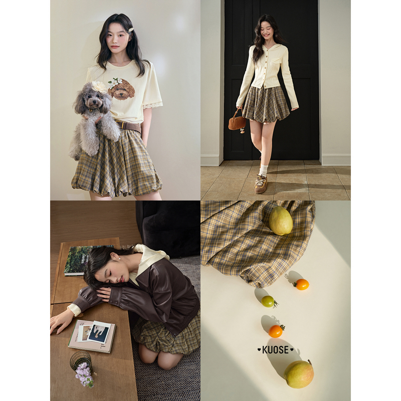 阔色花苞裙格纹裙半裙25秋季 女短裙子格子半身裙学院a字裙夏 新款