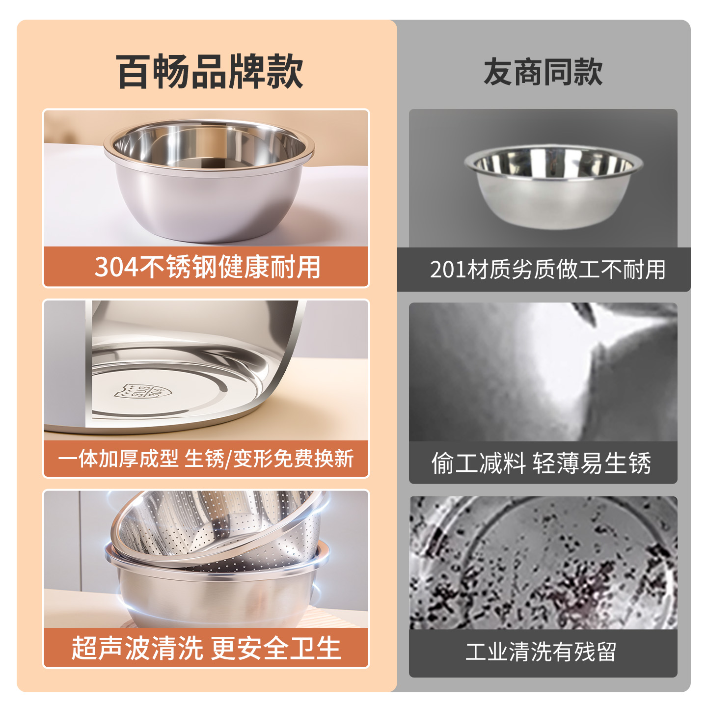 不锈钢盆304食品级加厚厨房家用洗菜盆和面盆洗脸盆面盆大号特大