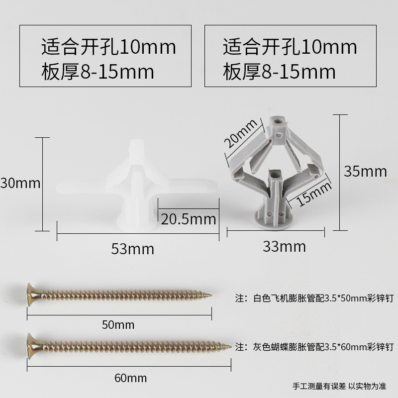 石膏板专用飞机蝴蝶膨胀螺丝管螺丝自攻螺丝套装 螺丝胶塞螺栓涨塞