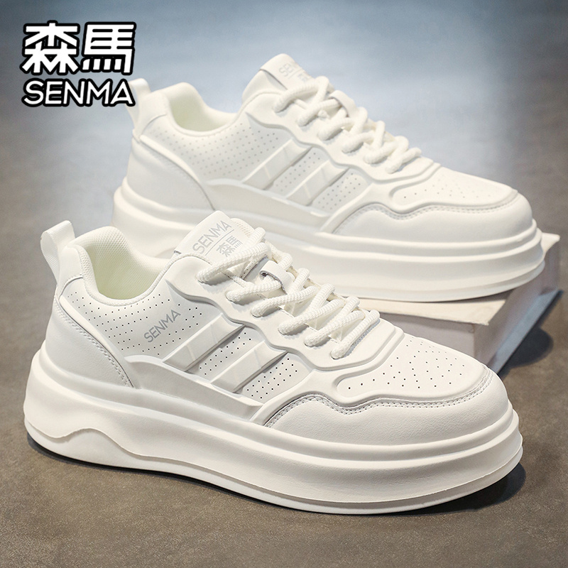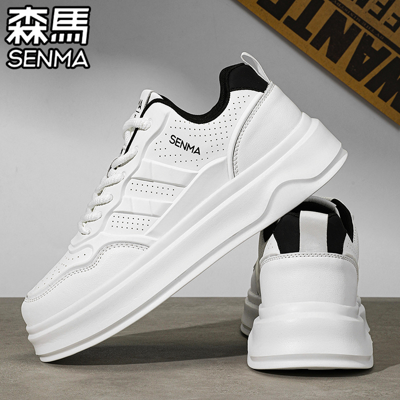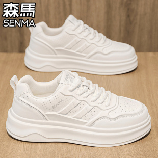 2025新款 厚底增高真皮小白潮鞋 秋季 男士 运动休闲白色板鞋 森马男鞋
