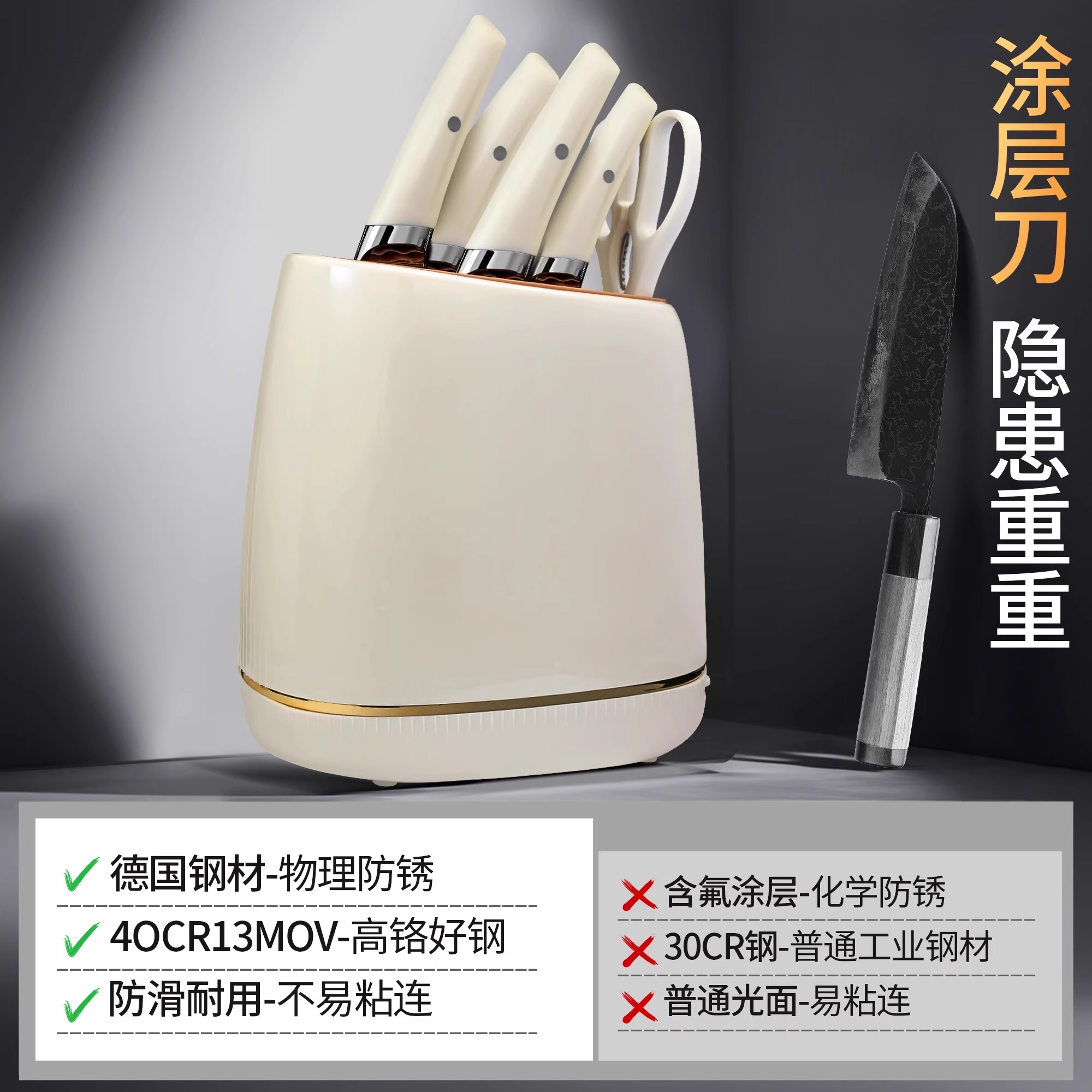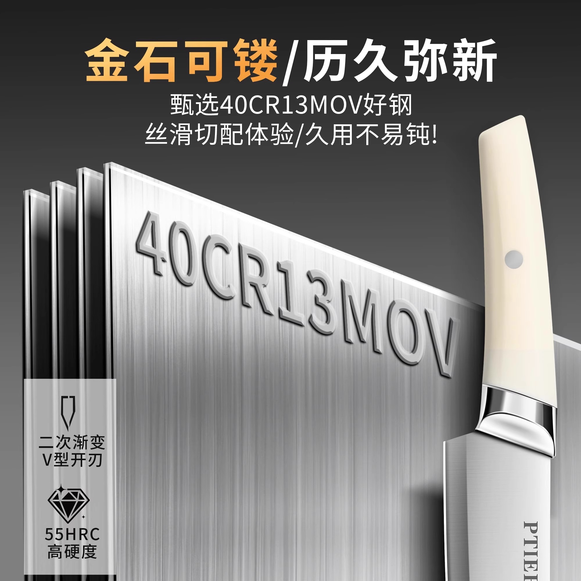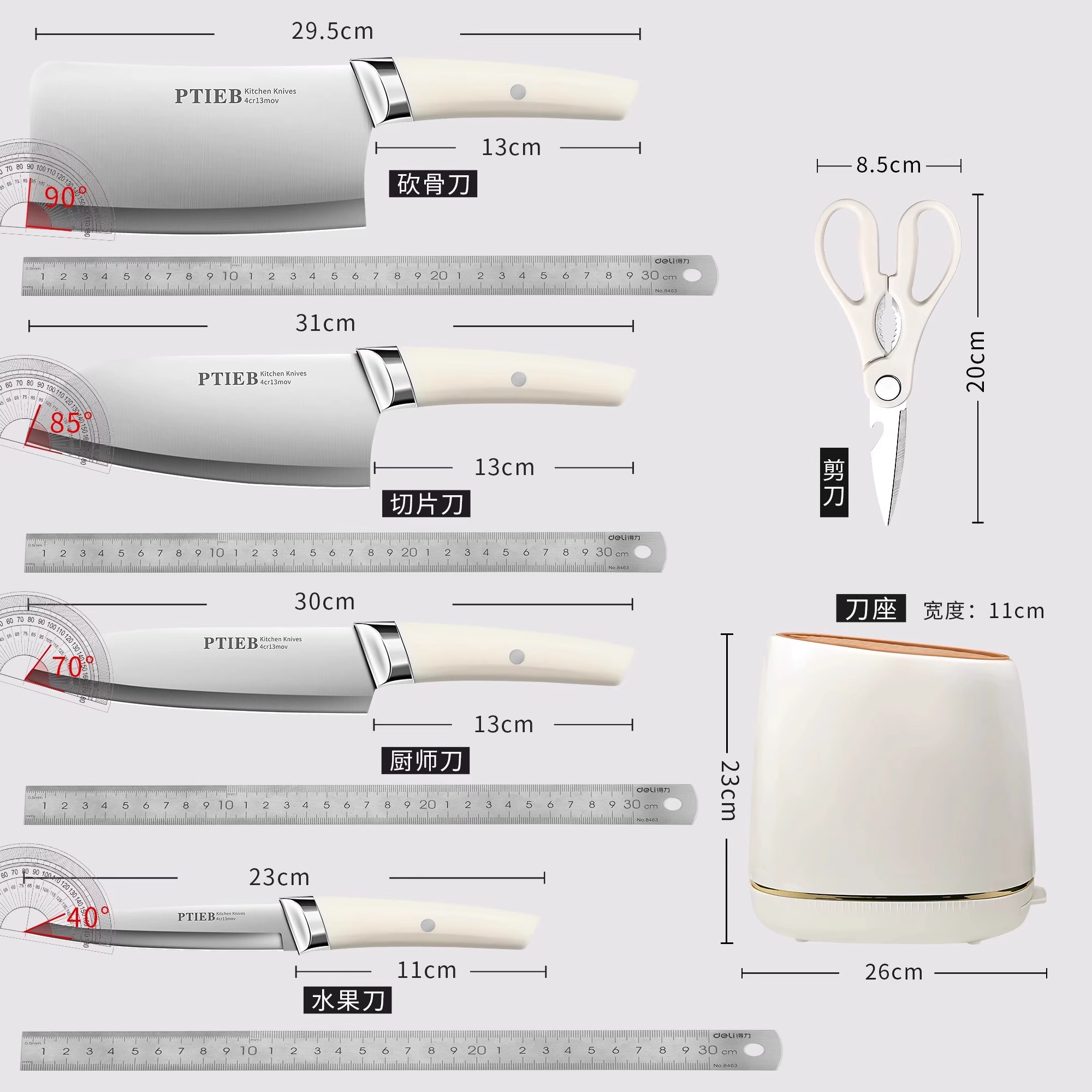 德国刀具厨房厨具套装 菜板组合家用辅食砧板切片刀砍骨刀板三件套