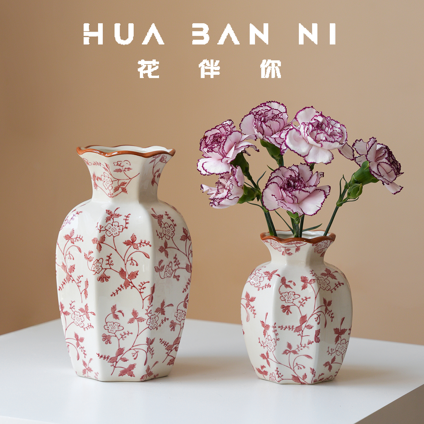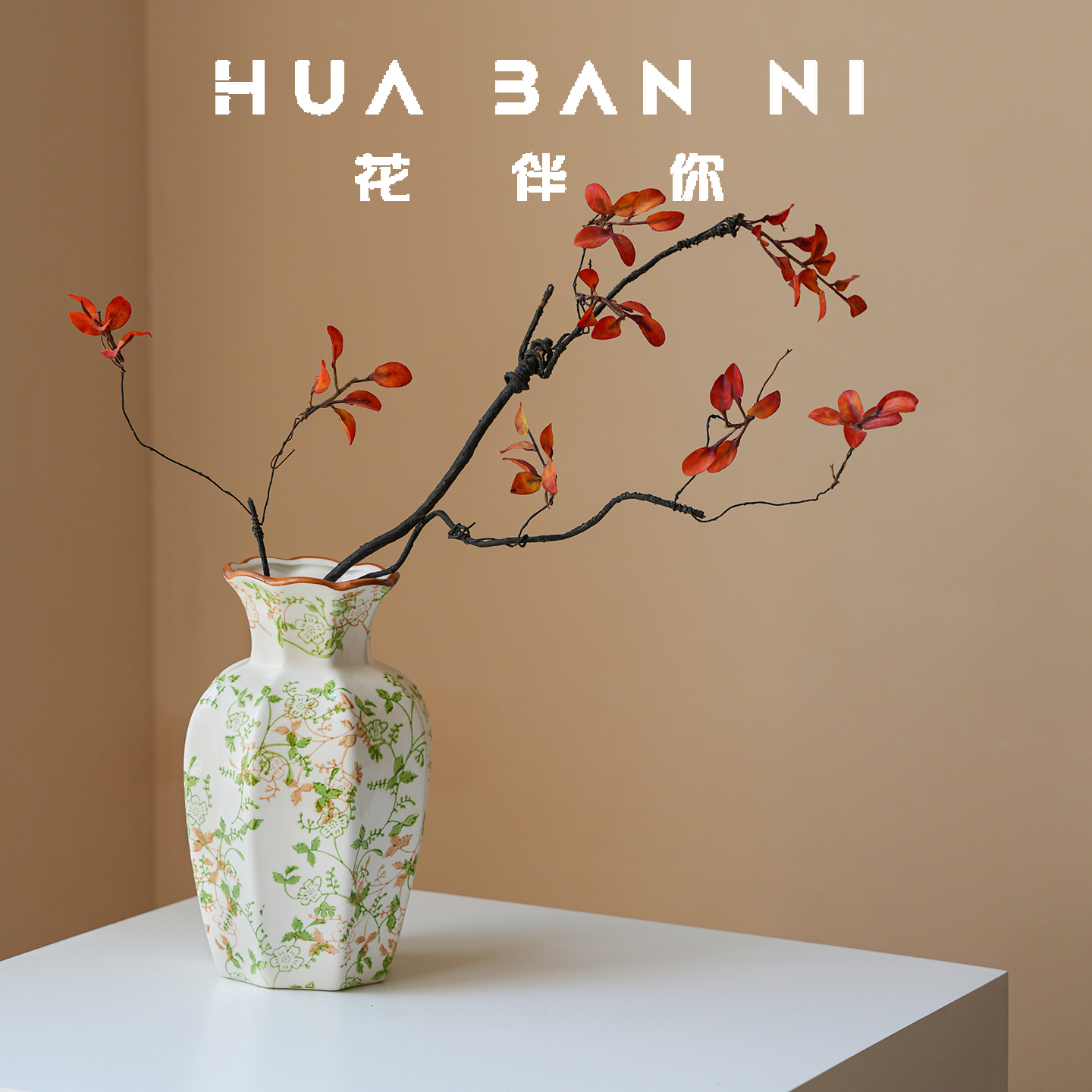 中古风青花瓷花瓶高级感复古陶瓷花瓶客厅插花装 饰品玄关鲜花瓶