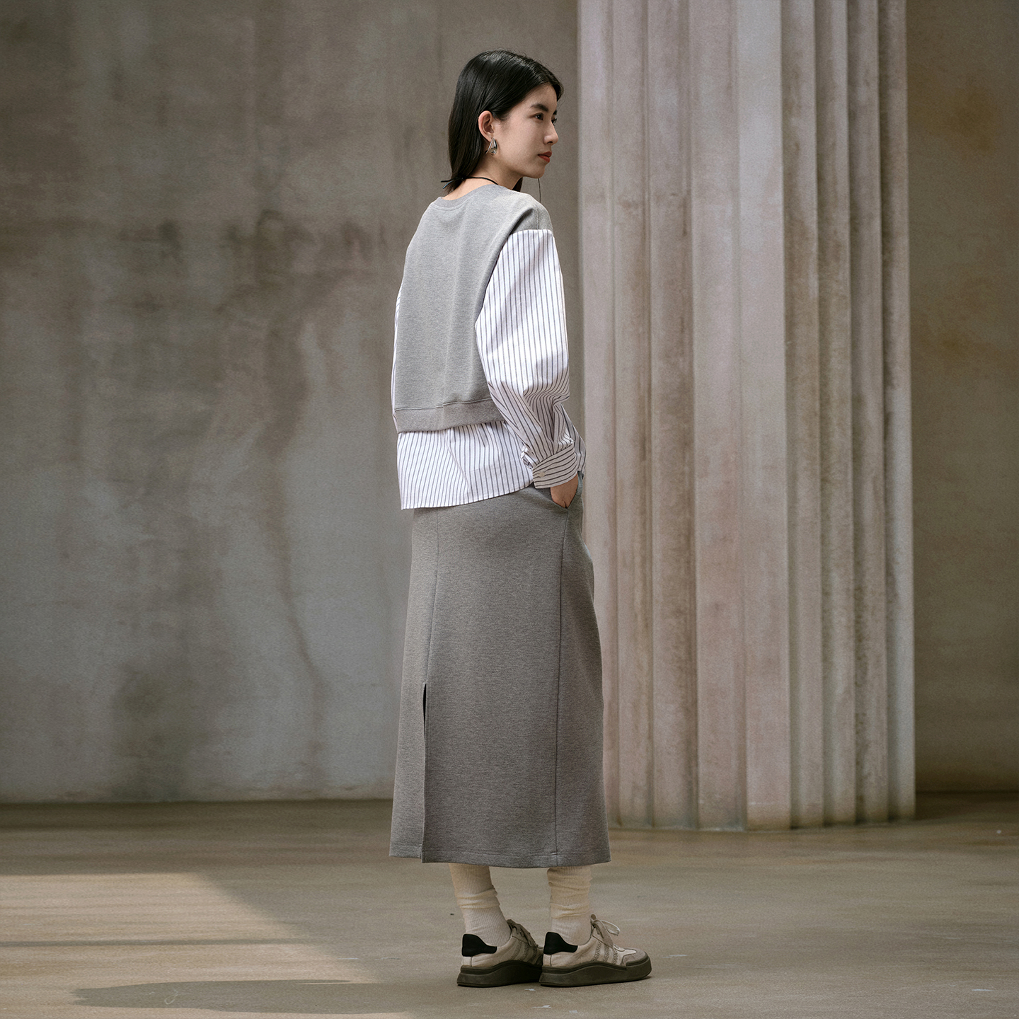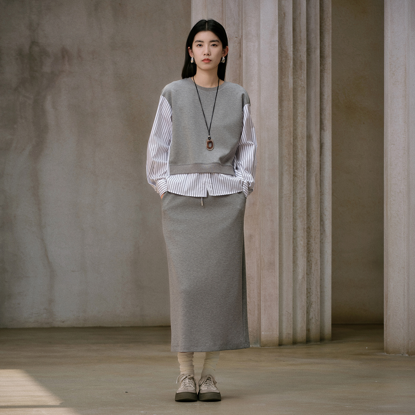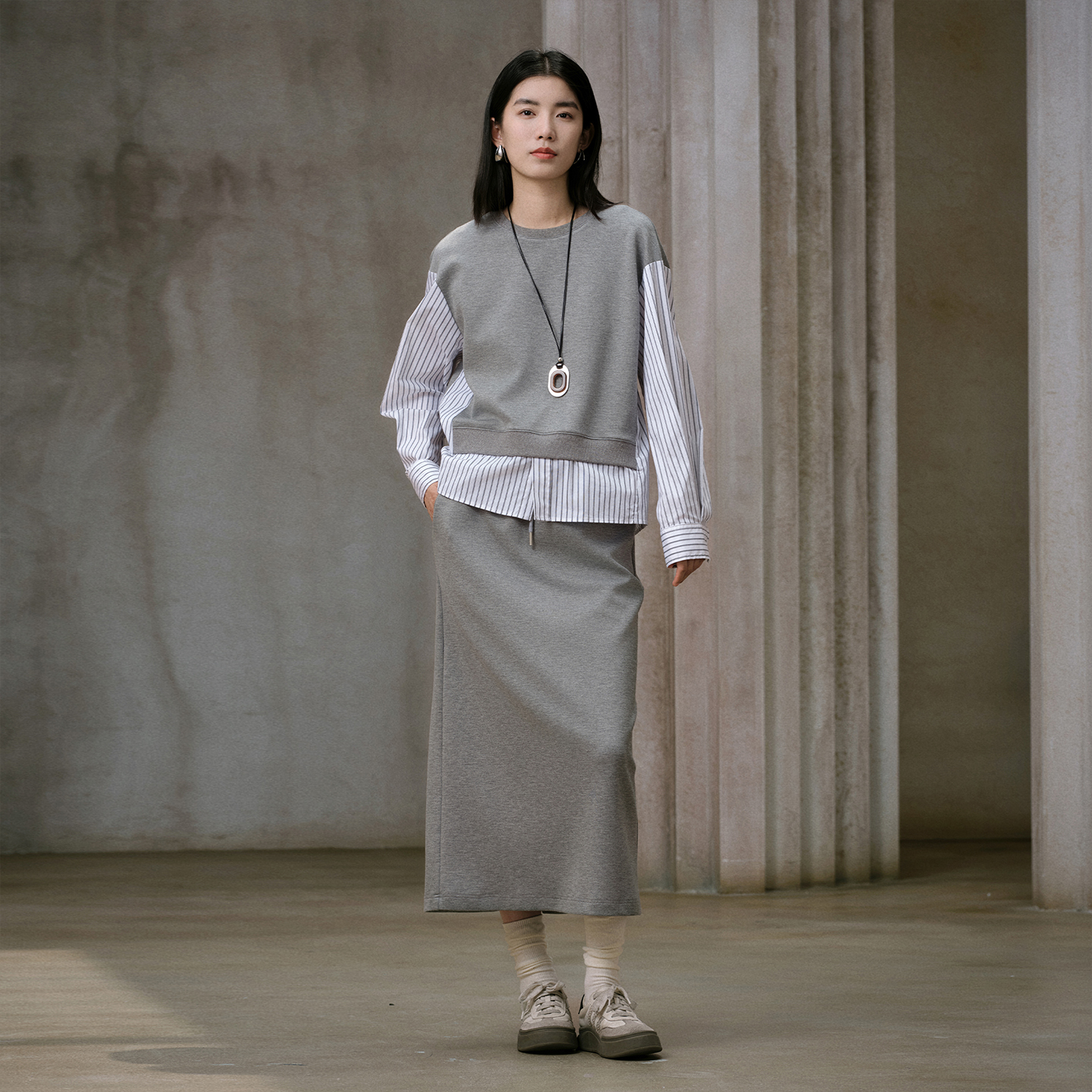 新款 女25秋季 阿依莲休闲套装 气质两件套拼接上衣半裙 商场同款