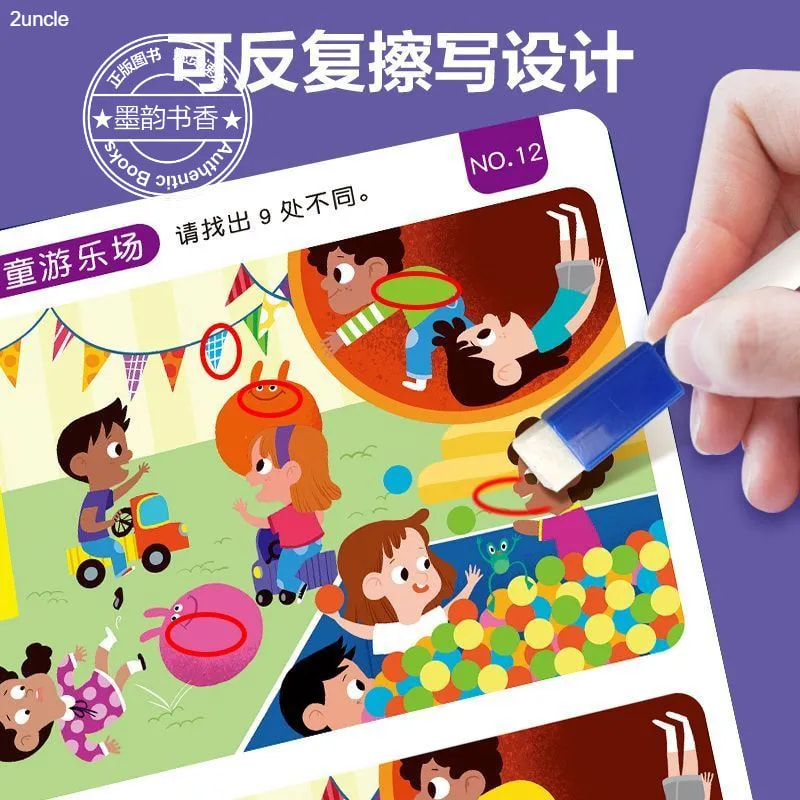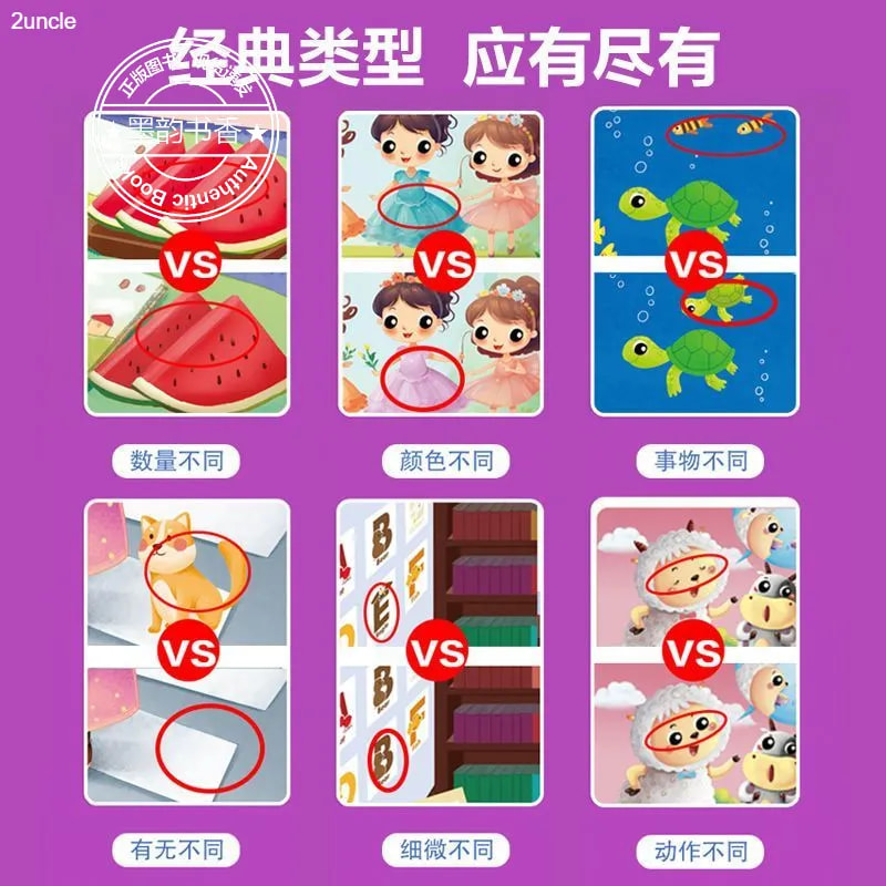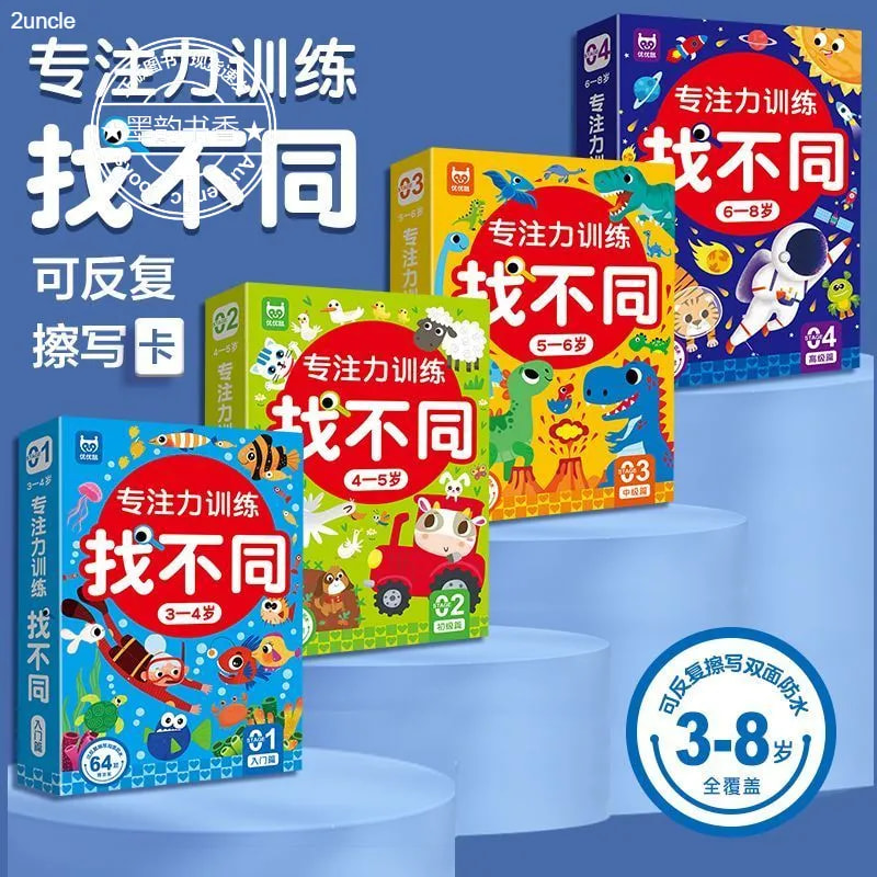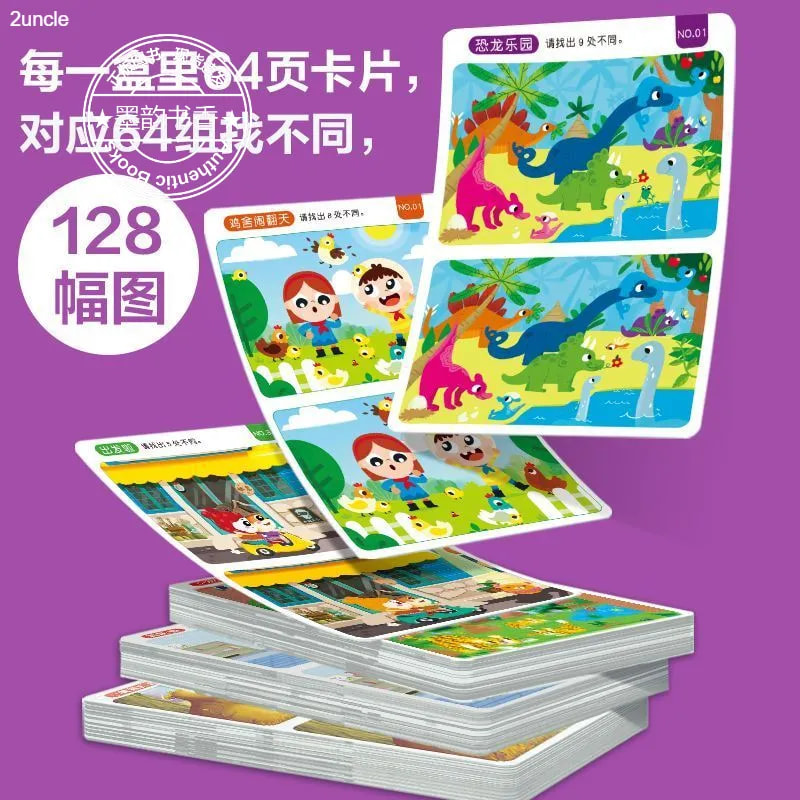 6岁幼儿园儿童趣味益智找茬书训练卡3到6岁以上幼儿可擦写思维早教玩具卡零基础入门动物 宝宝找不同专注力训练卡片2