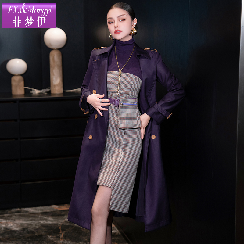 大衣 休闲英伦风小个子宽松薄款 紫涵中长款 直筒风衣外套女春秋新款