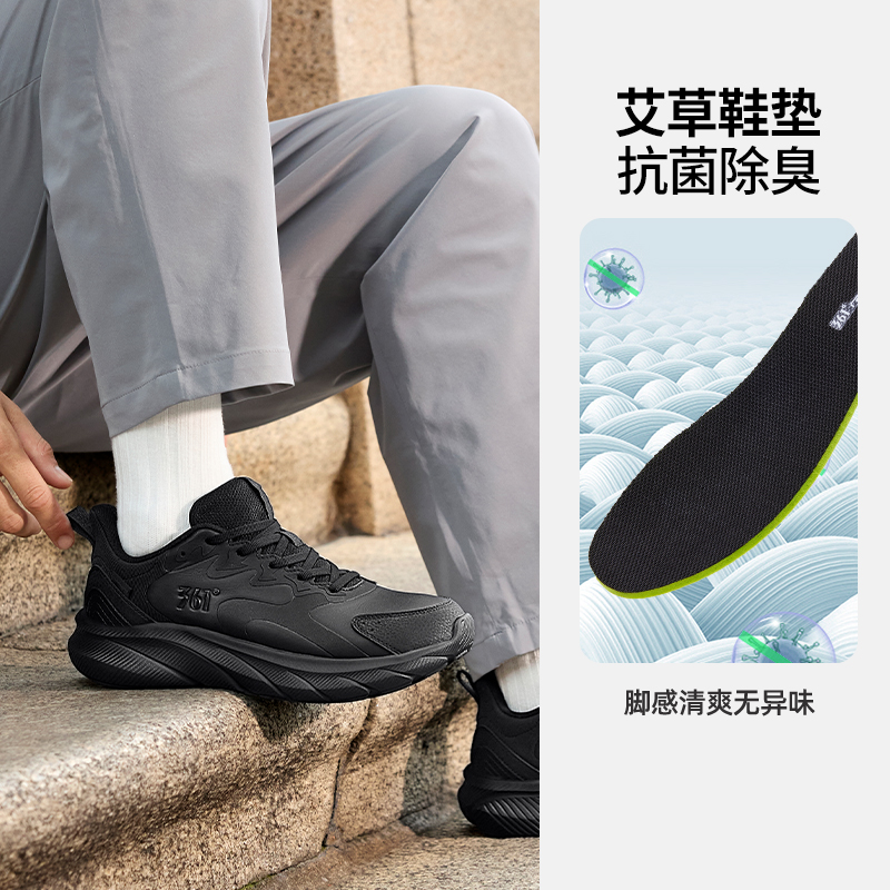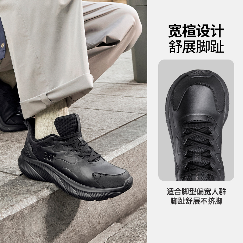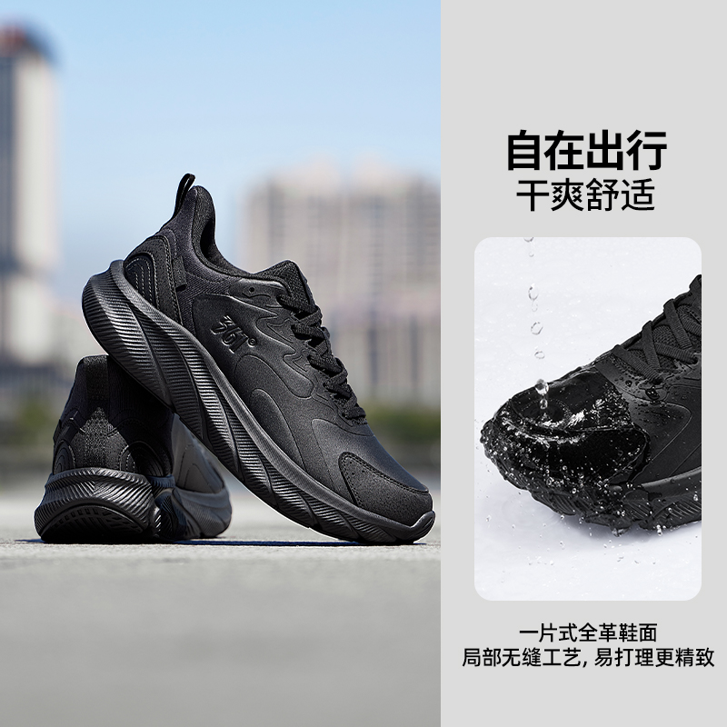 运动鞋 减震跑步鞋 2025冬季 子黑色宽楦休闲跑鞋 皮面防水鞋 361男鞋
