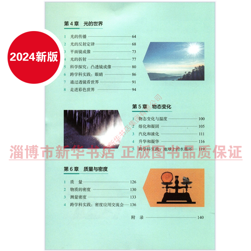 六三制六8年级上册物理教材课本教育科学出版 现货 社教科版 八年级上册物理义务教育教科书 2024年新版 新华书店正版 正版