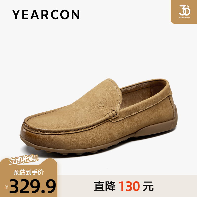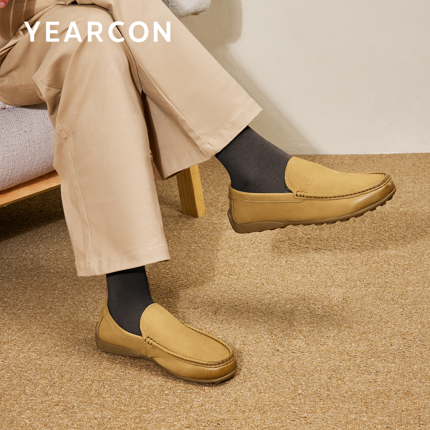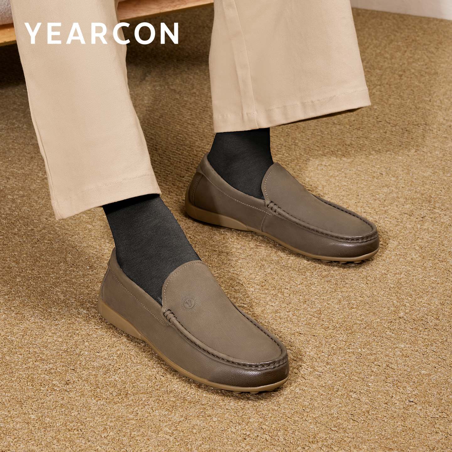 男2025秋季 套脚单鞋 新款 复古时尚 头层牛皮轻便休闲鞋 意尔康豆豆鞋