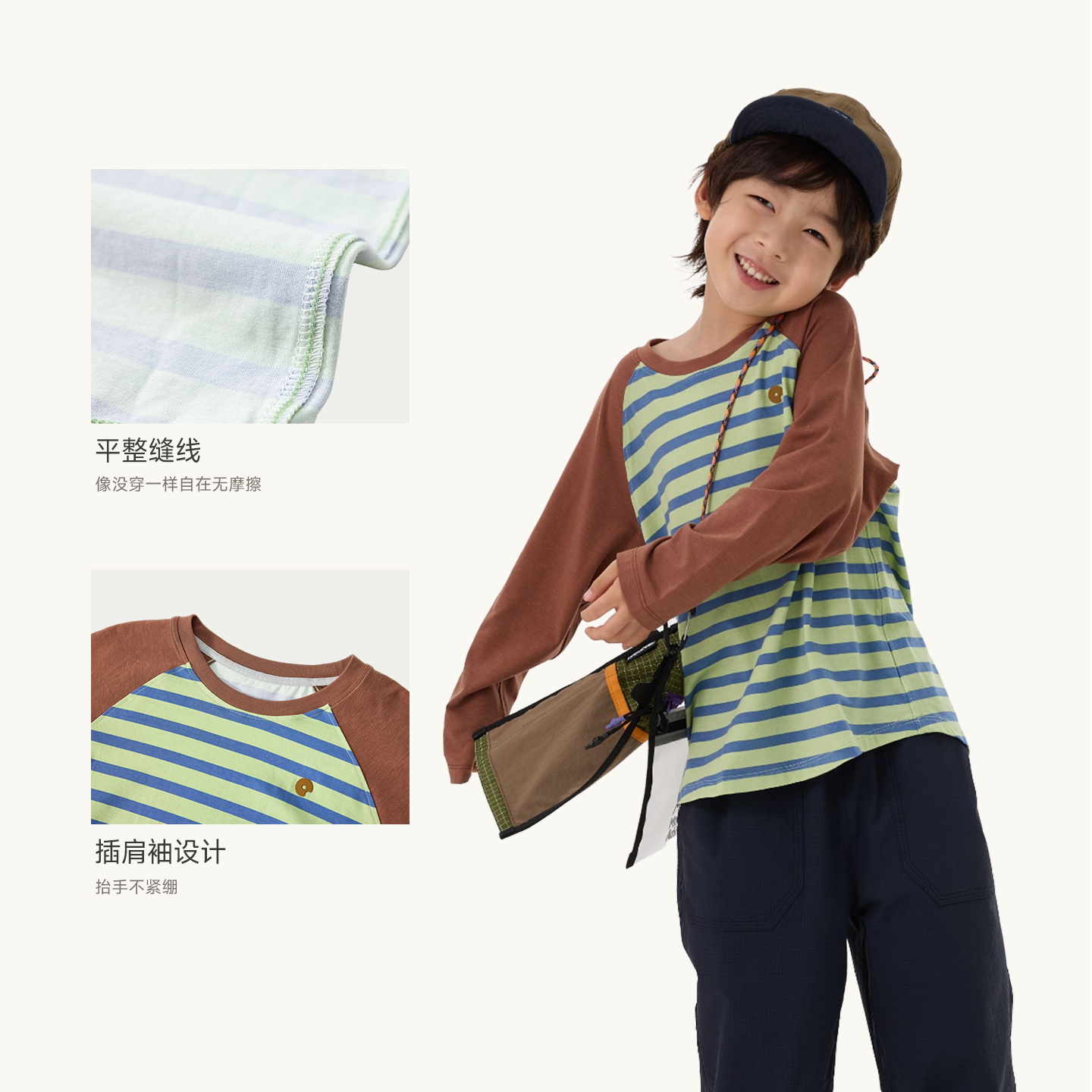 长袖 Q21小蜡笔儿童长袖 T恤男女童莱赛尔抑菌排汗透气线条百搭秋款