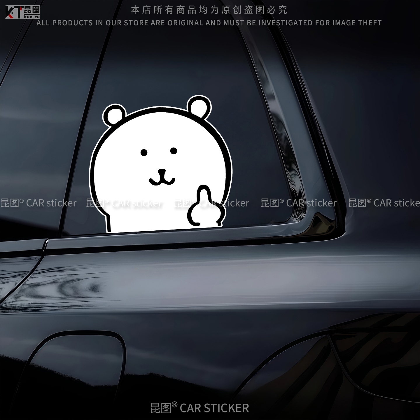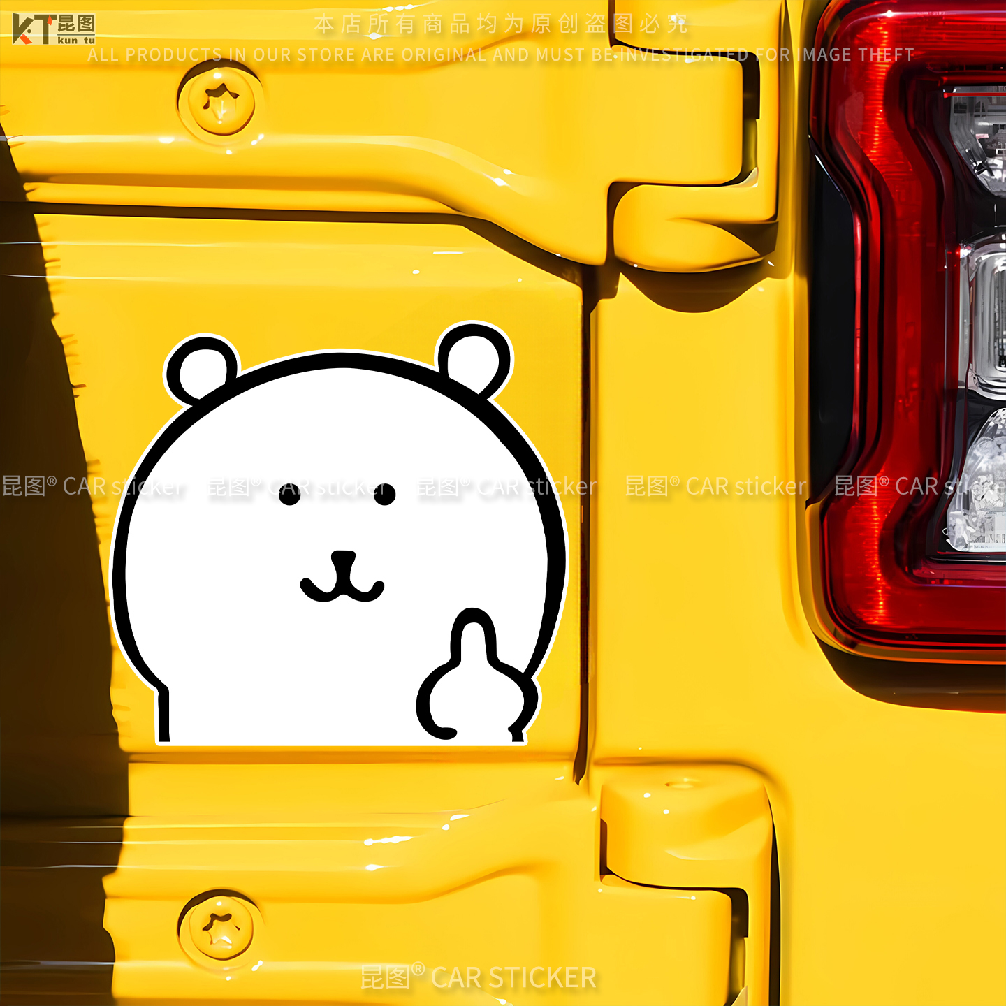 自嘲熊可爱卡通汽车贴纸车身遮挡刮痕装 饰电动车行李箱垃圾桶贴画