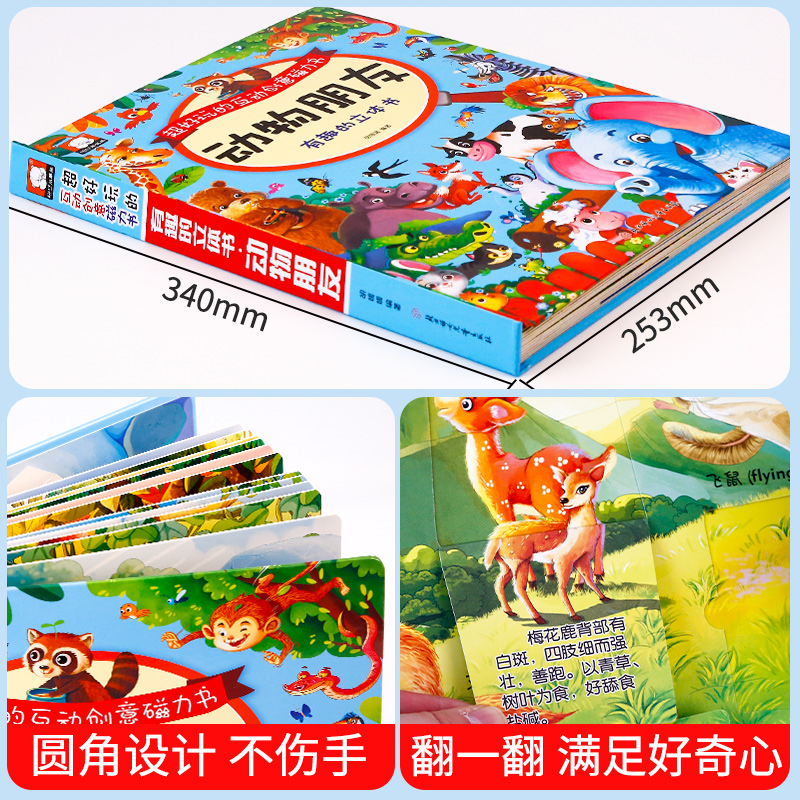 互动创意磁力书儿童3d翻翻书绘本益智书籍早教书启蒙认知故事书动物书机关书0 6岁有趣 立体书 动物朋友立体书超好玩