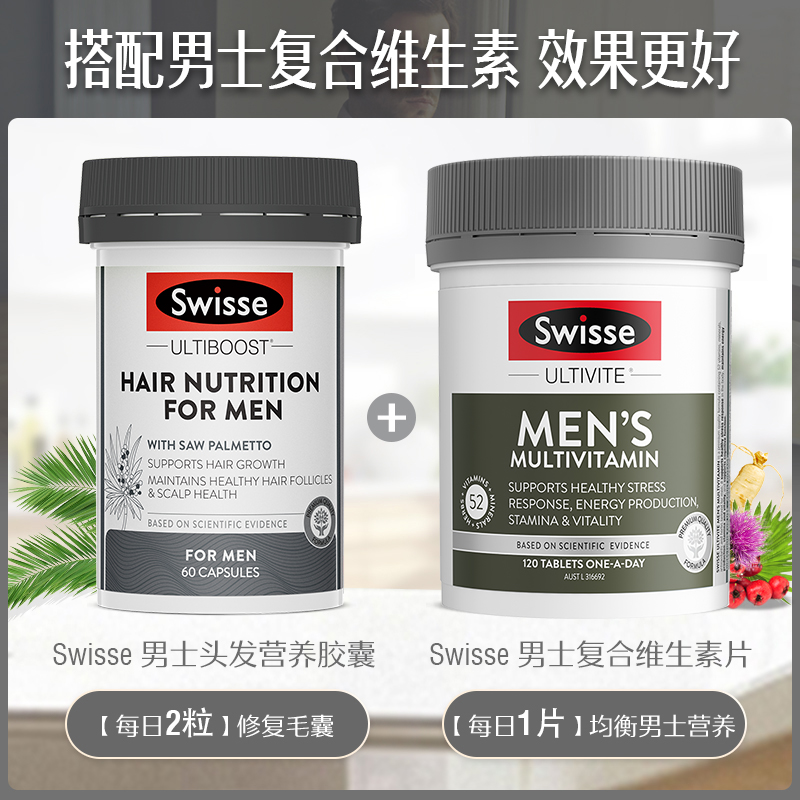 Swisse男士 60粒澳洲进口男性 维生素养发头发护发复合胶囊发际线
