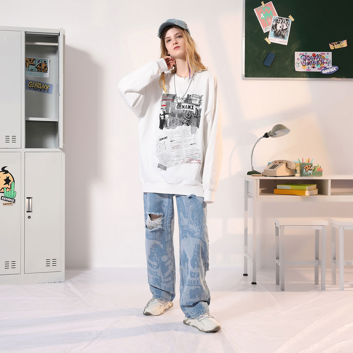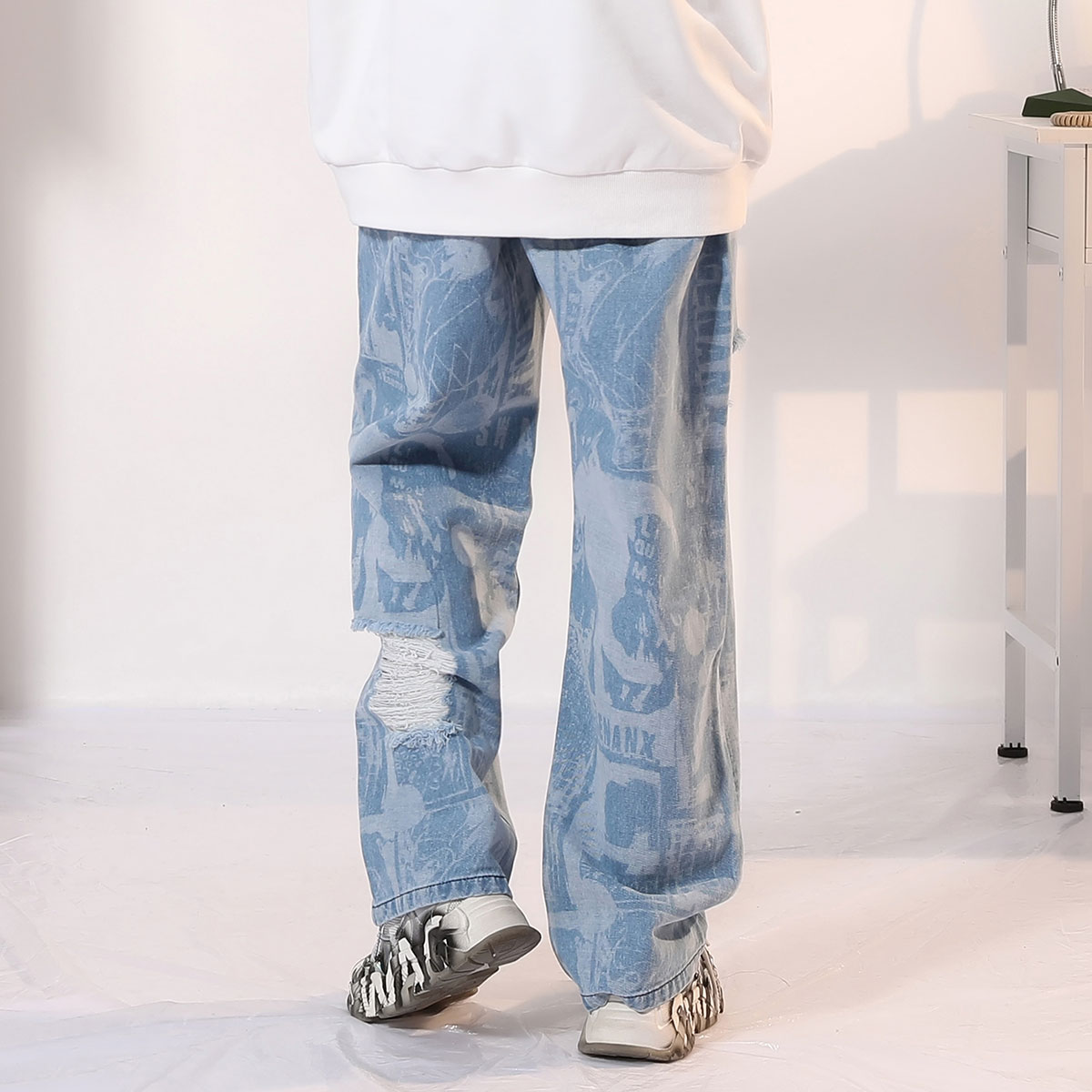 宽松显瘦百搭直筒阔腿微喇裤 美式 2025新款 女春季 高街复古蓝牛仔裤