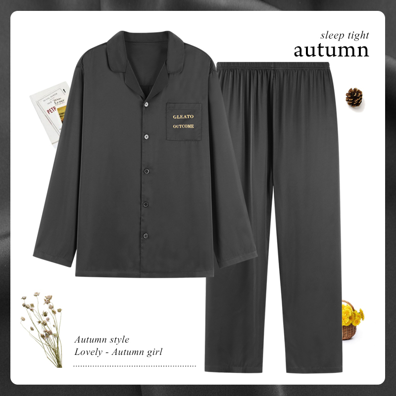 睡衣时尚 冰丝长袖 开衫 男式 乐姿梦春秋季 青年高级感家居服套装 男士