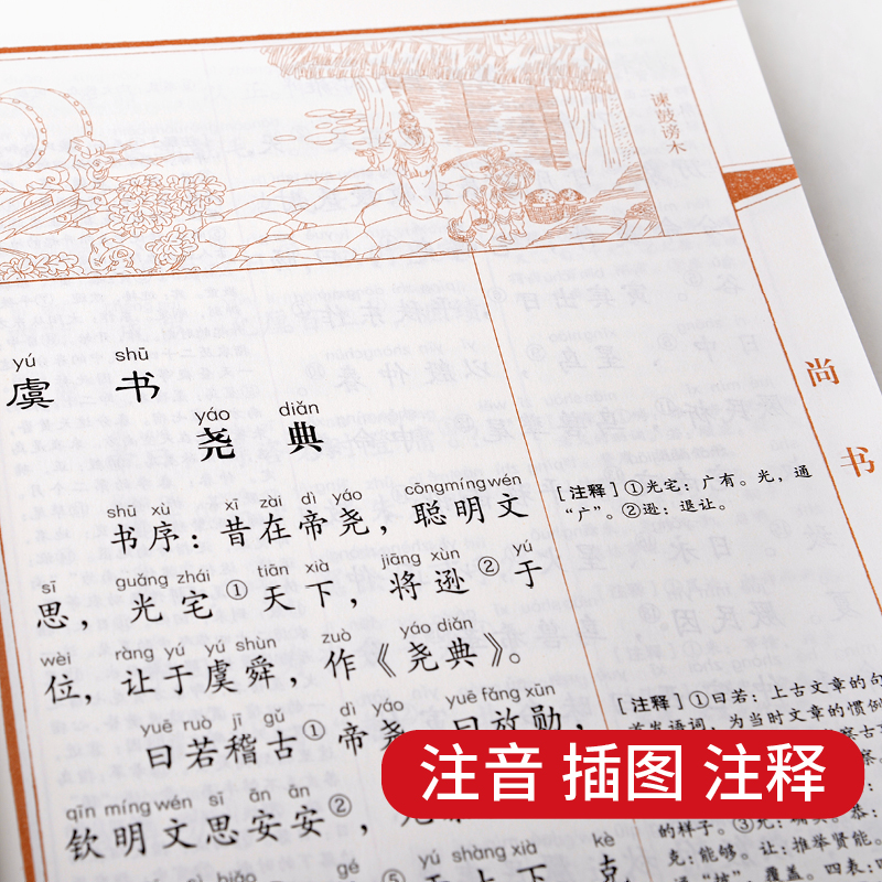 尚书儿童版 中华原典诵读系列 注音版 小学生有声诵读本文白对照译注 12岁绘本故事图书 小学生一年级二三年级课外书6 现货正版