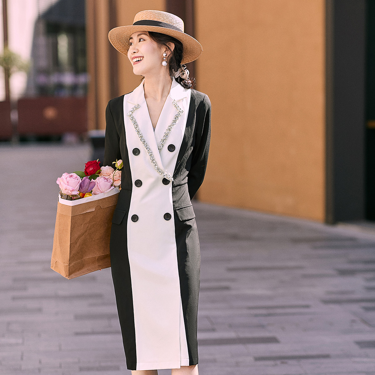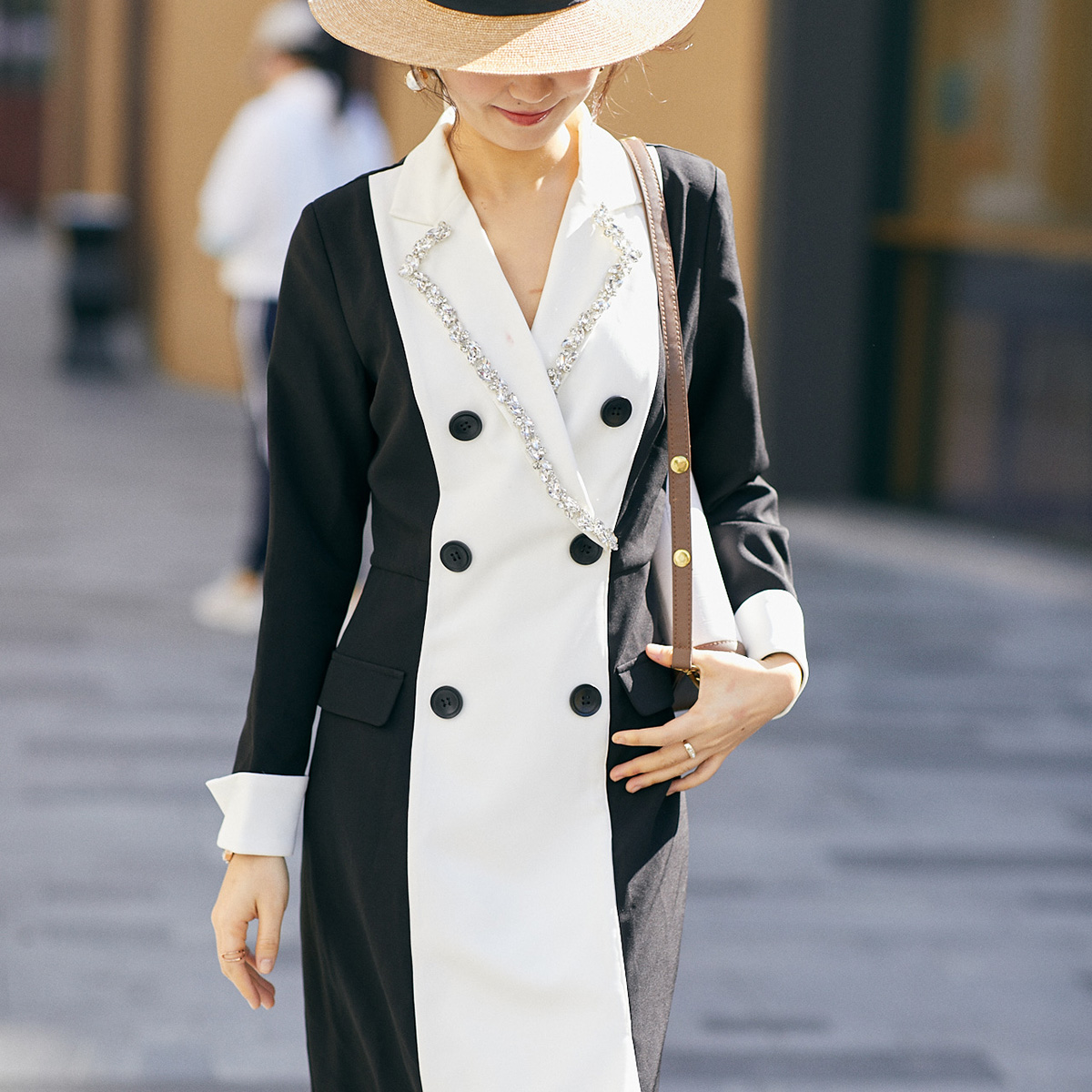 大气连衣裙初秋设计感小香风气质连衣裙轻奢感黑色复古西装 裙