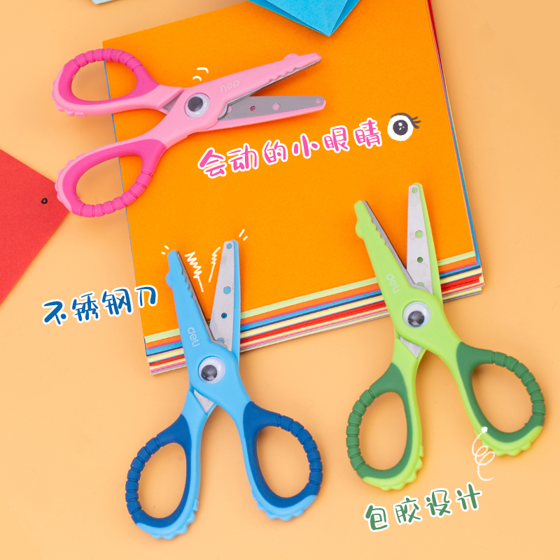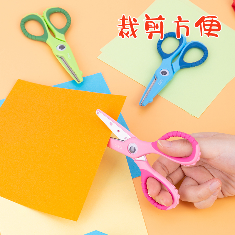 得力文具6071小鳄鱼卡通儿童便携式 手工学生小号剪刀儿童幼儿园手工剪刀剪纸儿童用美术美工剪刀安全手工DIY