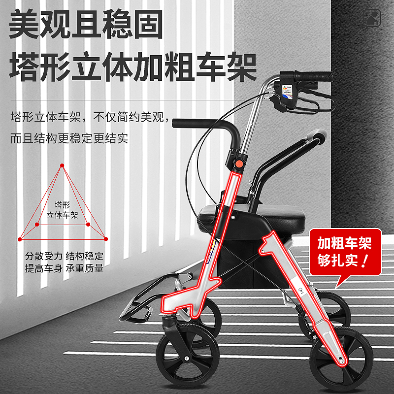 老年购物车老人手推车四轮代步车助行买菜车小拉车折叠轻便可坐车