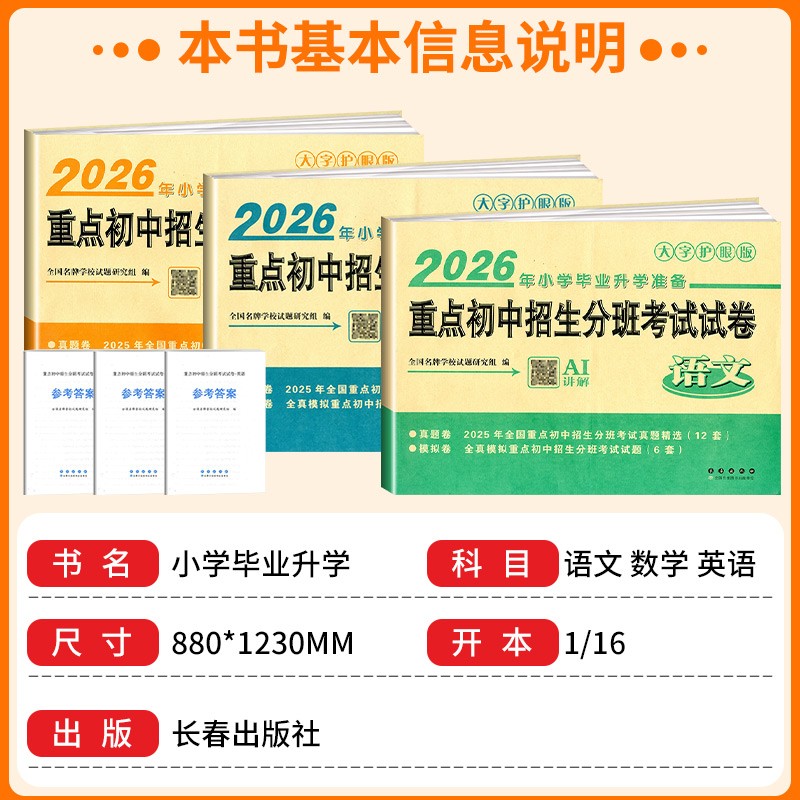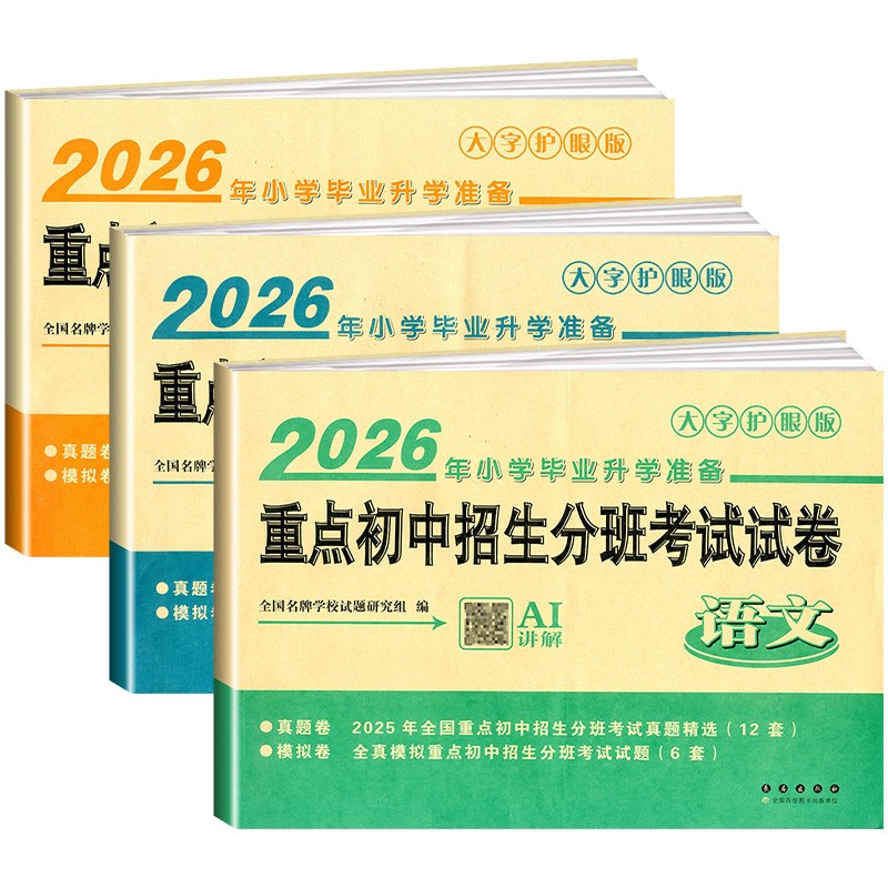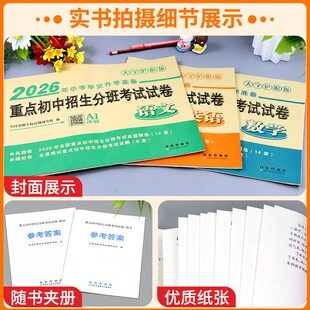 重点初中招生分班考试试卷 六年级人教版 语文 英语 全国小学毕业试卷精选小升初升学模拟卷大字护眼 数学 2026年小学毕业升学准备