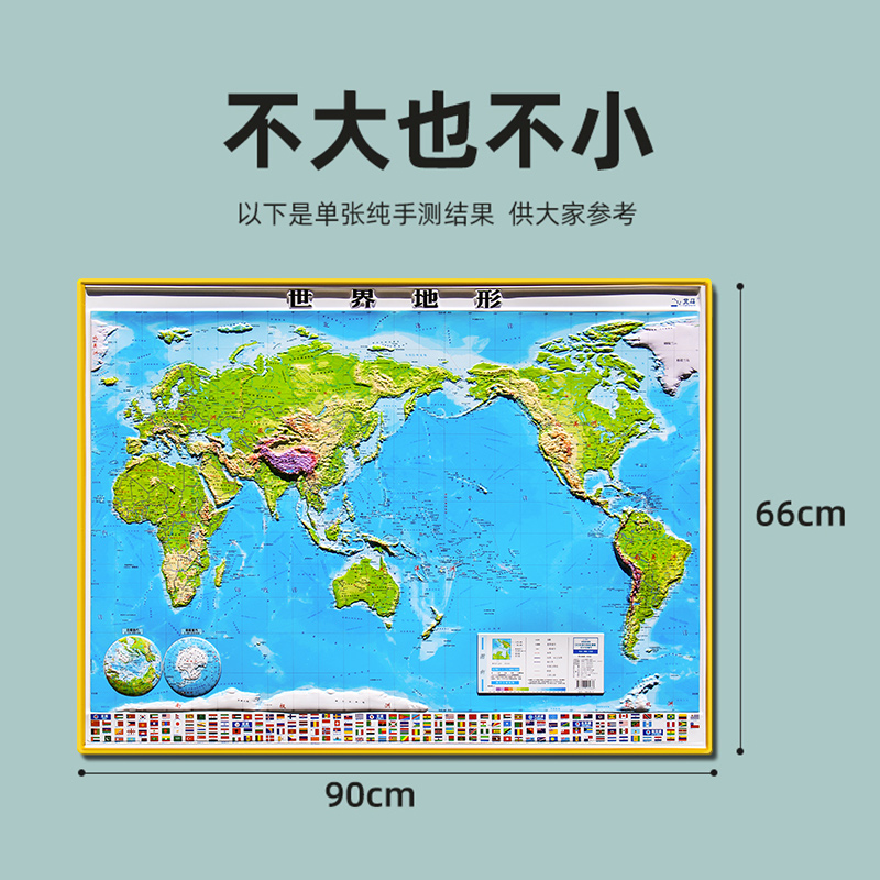 精雕版 3d凹凸山脉 2022年世界地形地图 世界3D立体地图浮雕 三维地貌墙贴 92厘米高清版