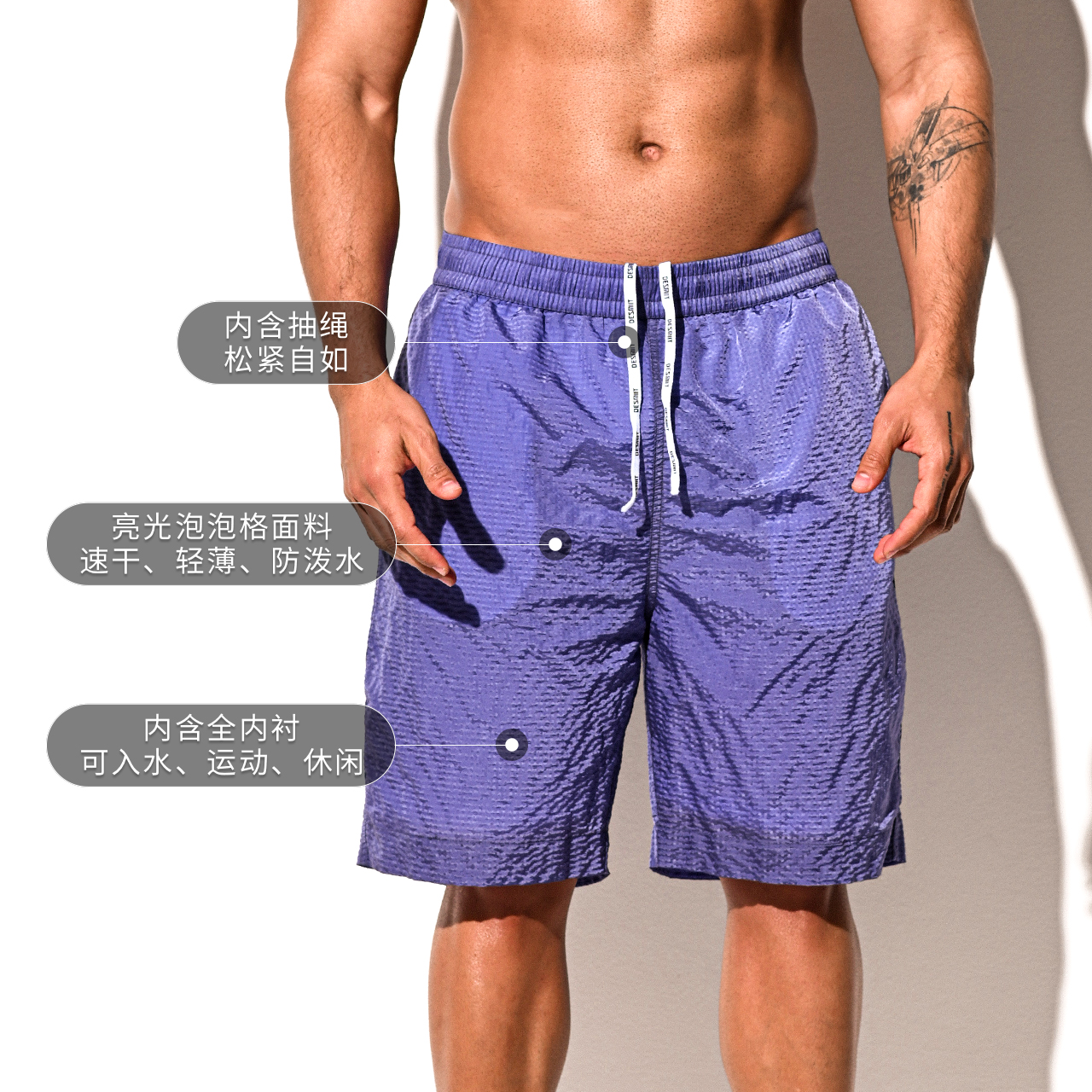 可下水沙滩裤 速干泳裤 宽松5分短裤 纯色度假休闲裤 夏季 desmiit男士