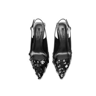 宽楦羊皮尖头细跟通勤浅口单鞋 大码 黑松露 秋冬女鞋 7or9黑色高跟鞋