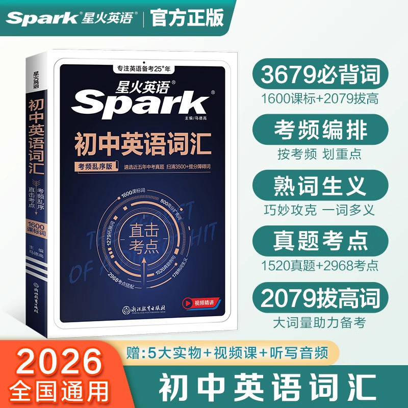 真题专项训练习题总复习 必备2000高频单词版 2026版 星火英语初中英语语法全解全练初中生七年级八年级九年级中考英语词汇考频乱序版