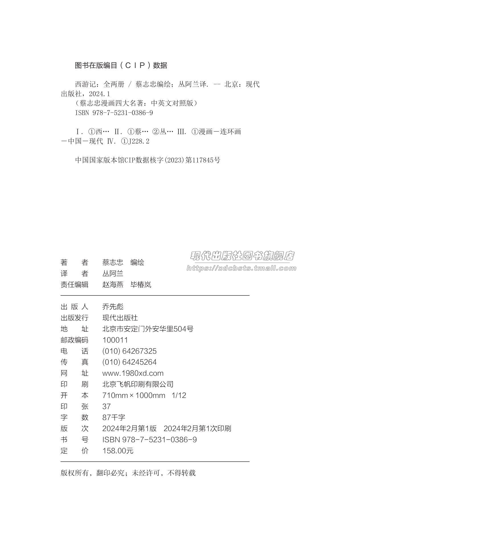 彩版 蔡志忠漫画全彩国学名著经典 蔡志忠漫画四大名著 中英文对照双语版 漫画传统文学中小学生青少年课外阅读书籍 西游记
