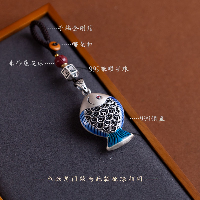 999纯足银鱼锦鲤汽车钥匙扣挂件饰吊坠绳链本命年男女高档礼物品