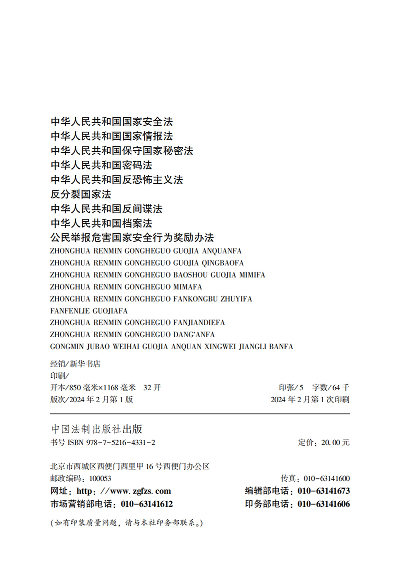 国家安全法 法制社 32开 反恐怖主义法 2024新书 九合一 反分裂国家法 保守国家秘密法 国家情报法 档案法 正版 密码 反间谍法 法