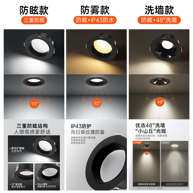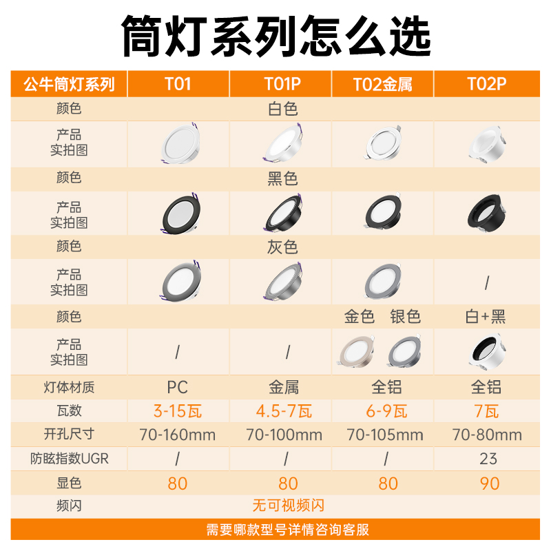 公牛防眩筒灯led嵌入式 全光谱射灯桶灯铜灯简灯客厅吊顶孔灯圆形