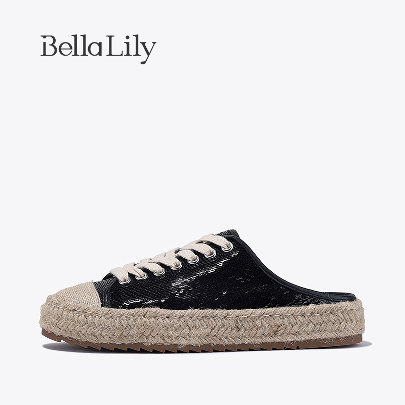 潮流休闲鞋 女一脚蹬板鞋 亮片麻绳半包拖鞋 BellaLily新款